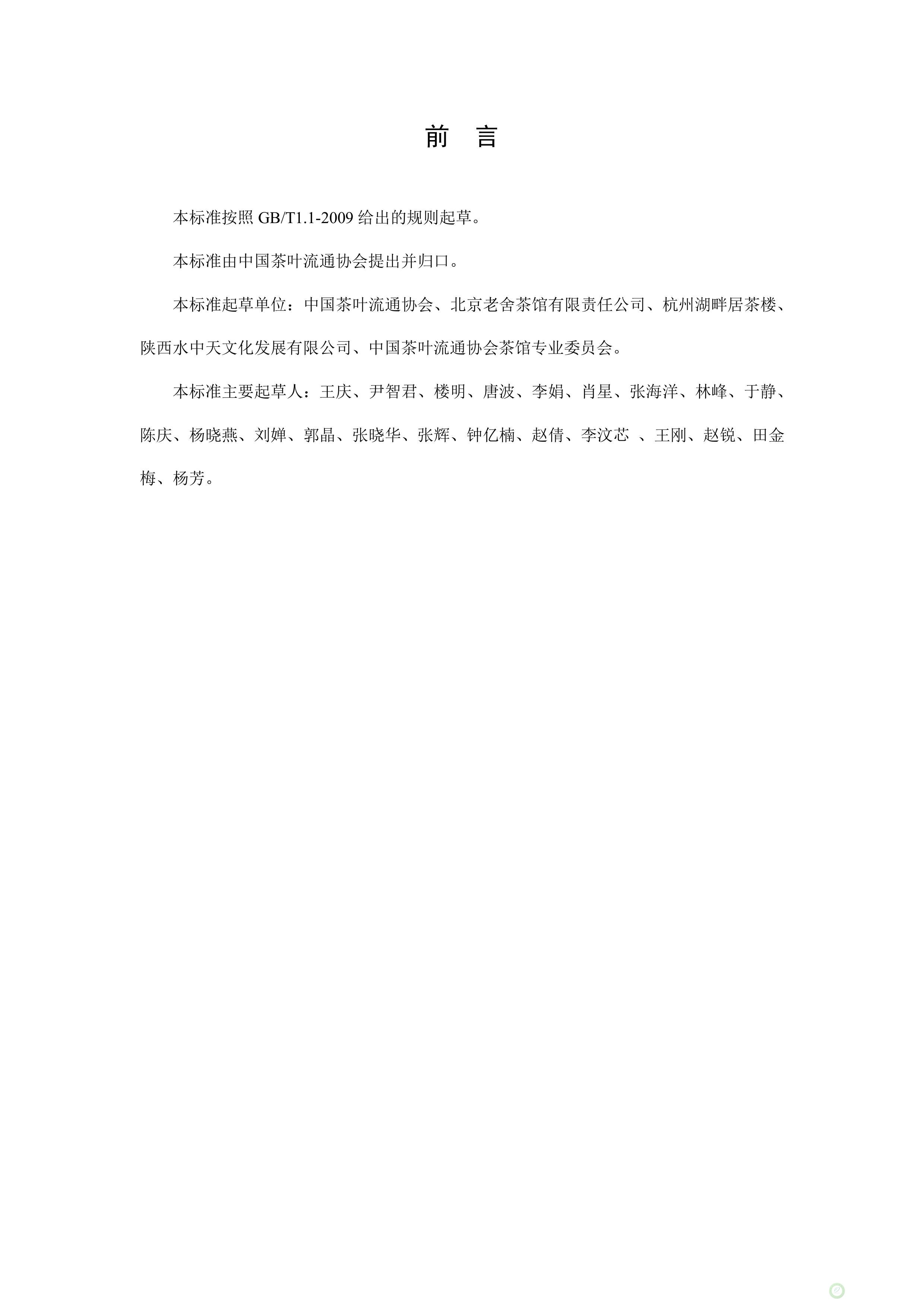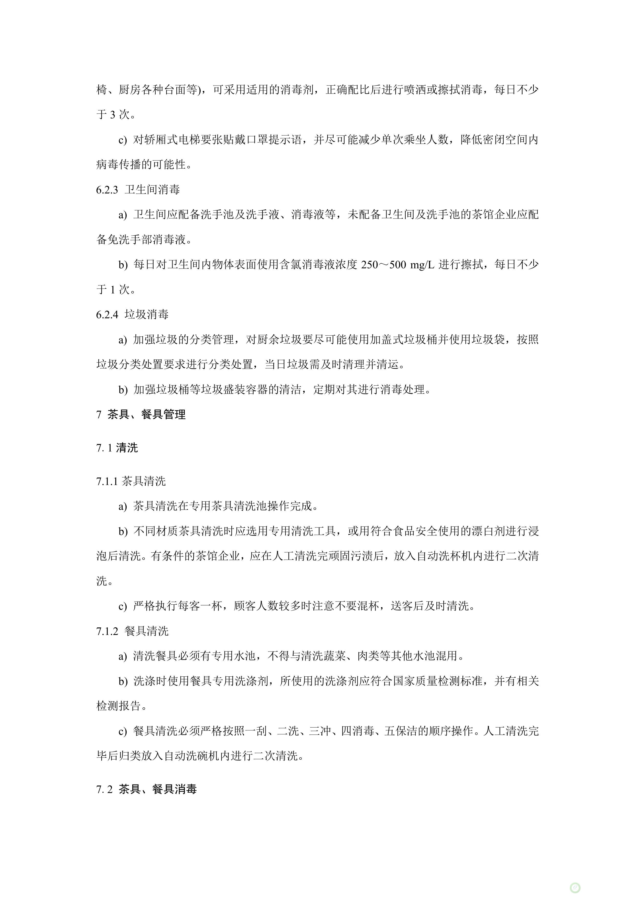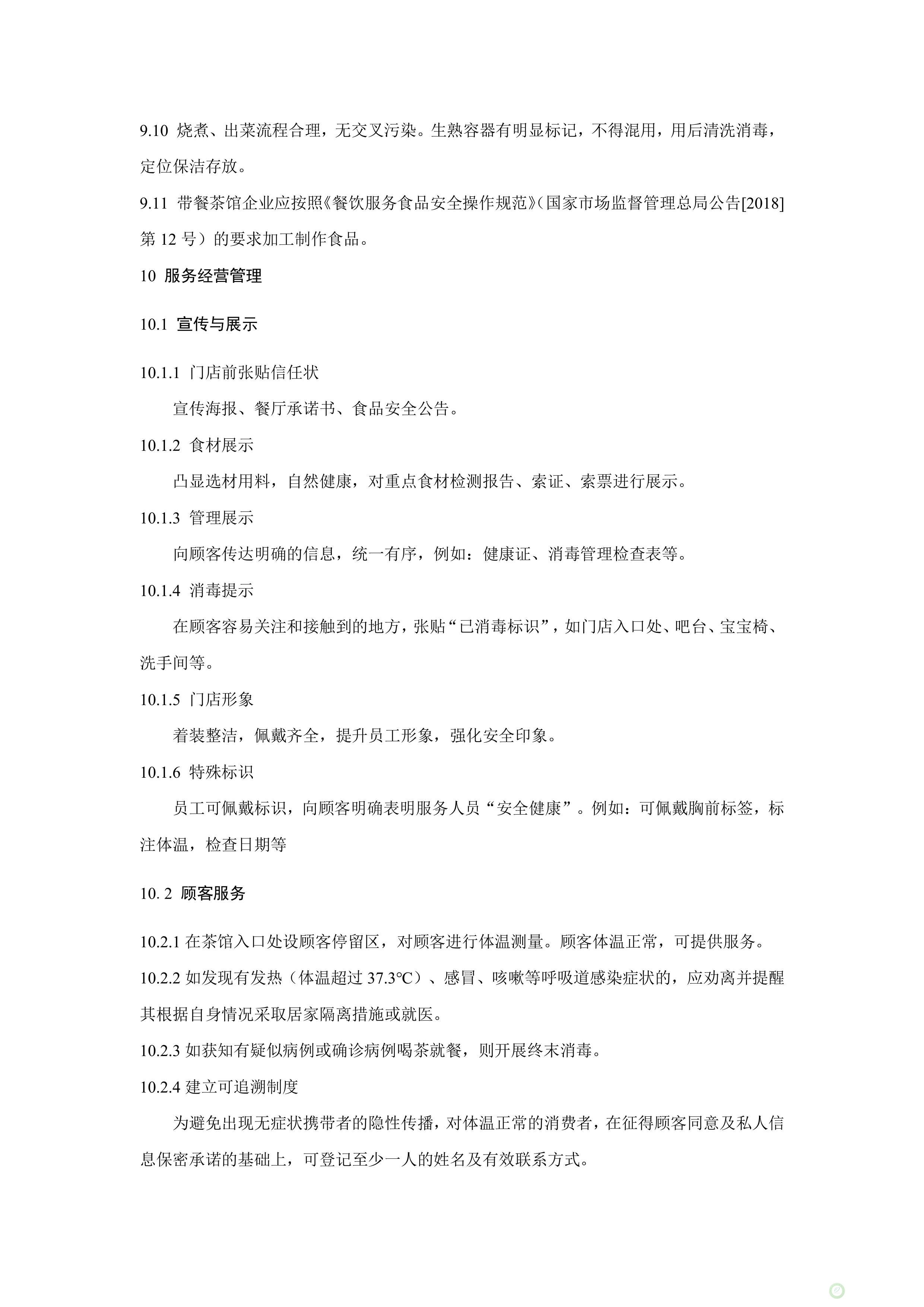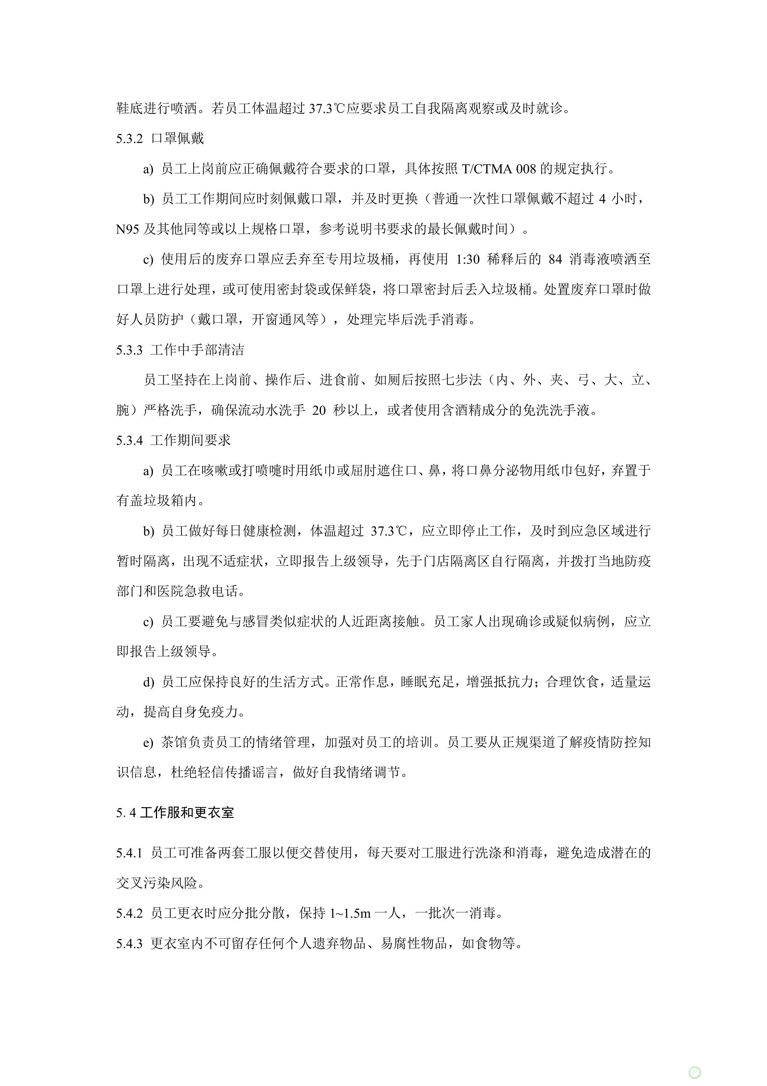 为深入贯彻落实党中央、国务院关于切实加强疫情科学防控,有力有序推动企业复工复产、振兴消费的工作指示和要求,指导茶馆行业在疫情期间有序恢复经营,中国茶叶流通协会联合行业多家茶馆企业共同编制了团体标准《茶馆行业复工复产疫情防控工作细则》(T/CTMA 009-2020)。此项标准于2020年2月28日发布,自2020年2月29日起正式实施。