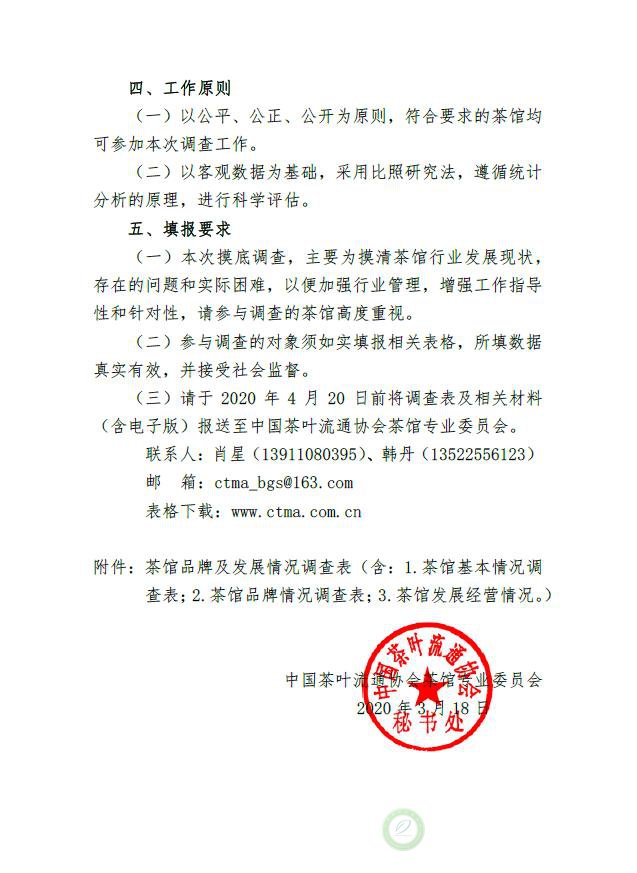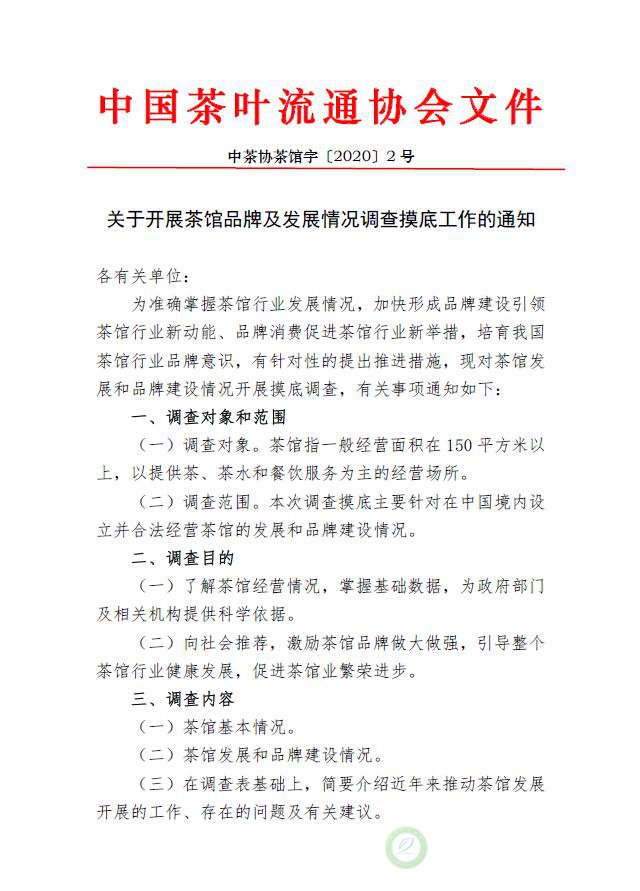 关于开展茶馆品牌及发展情况调查摸底工作的通知