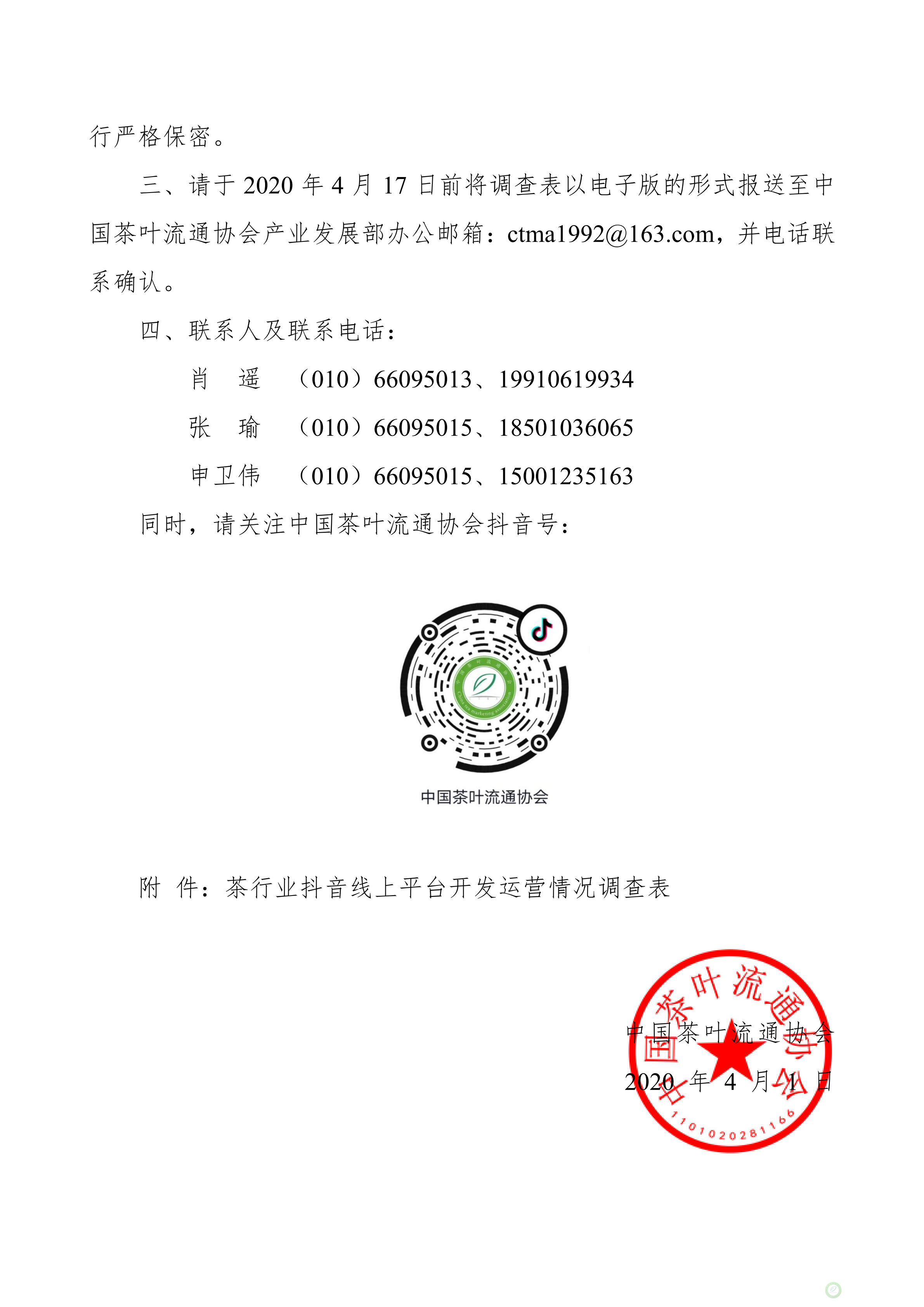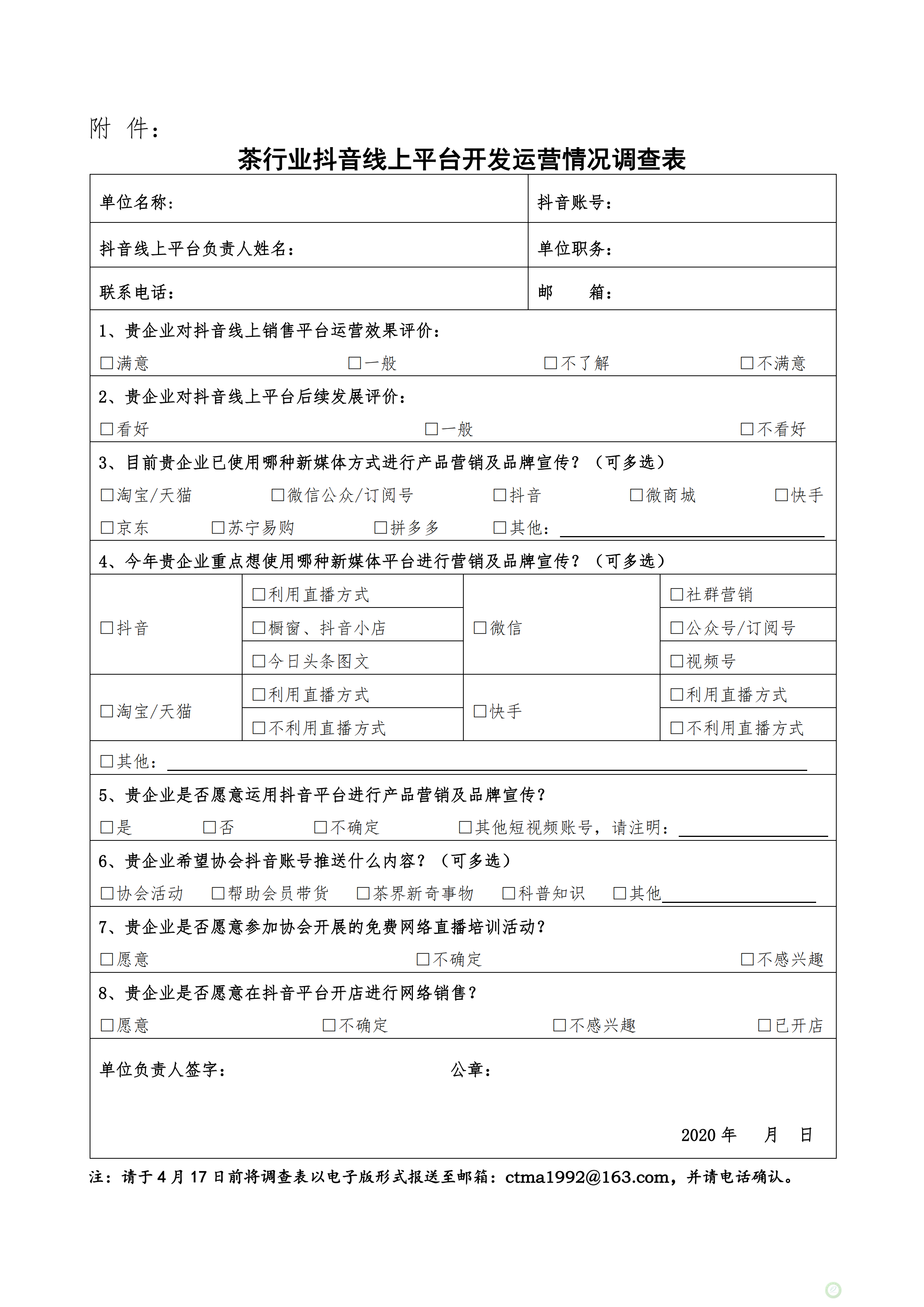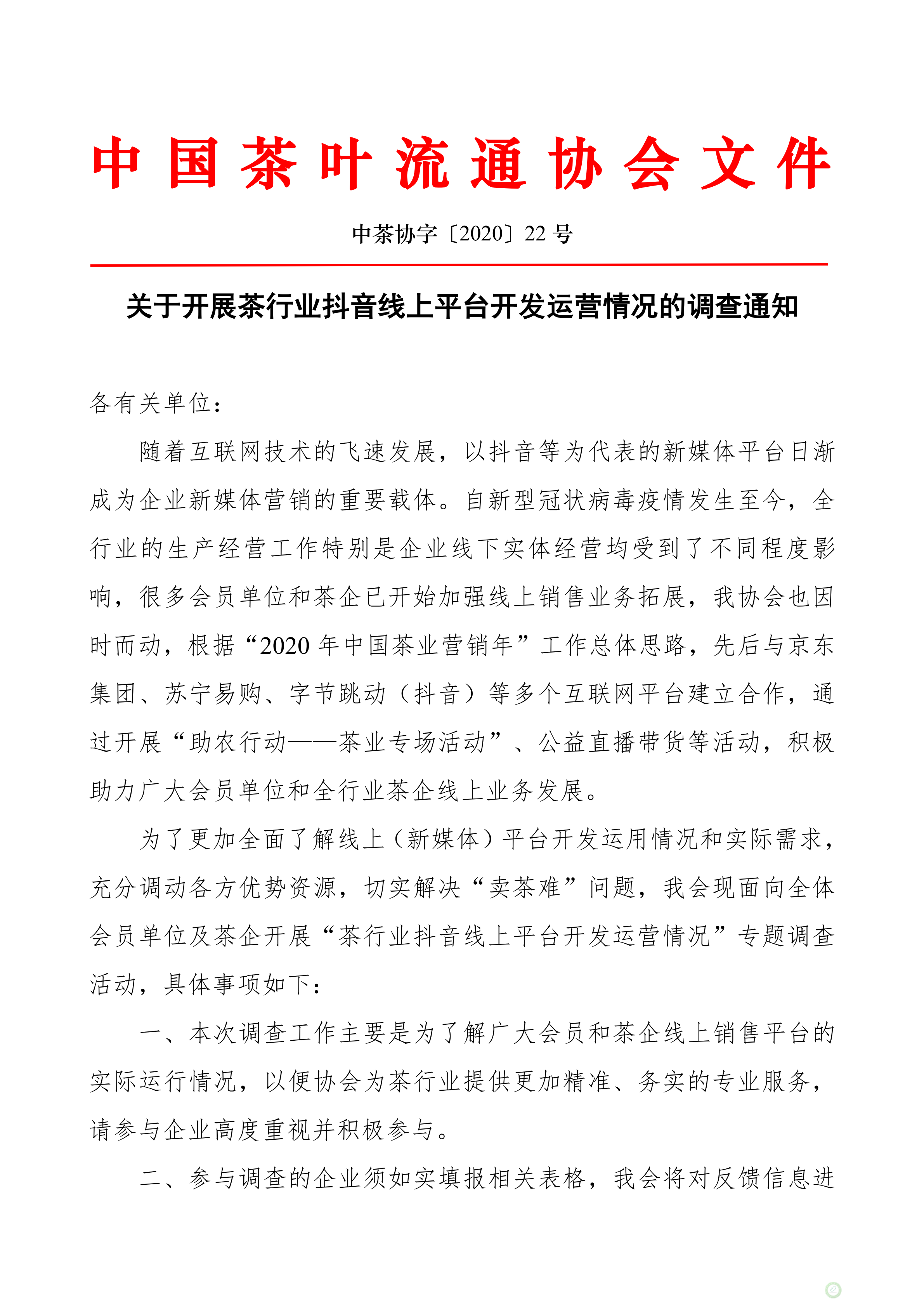 关于开展茶行业抖音线上平台开发运营情况的调查通知