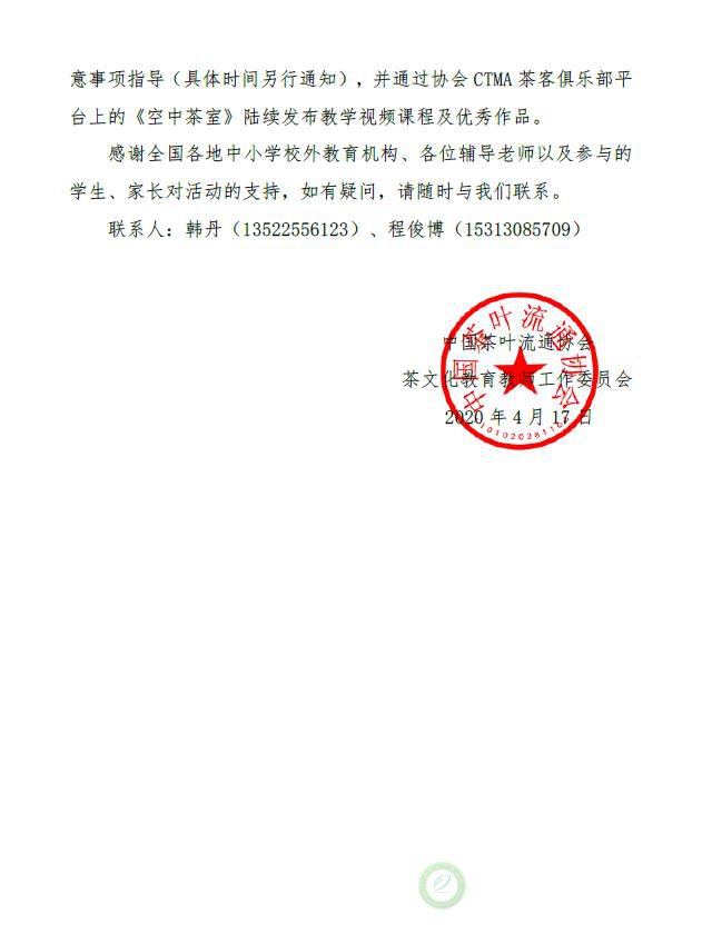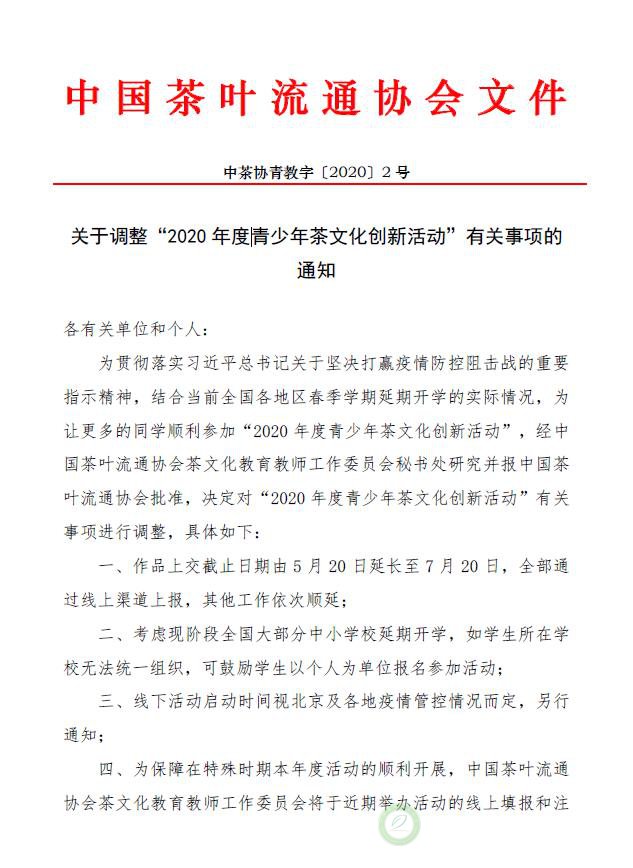 关于调整“2020年度青少年茶文化创新活动”有关事项的通知