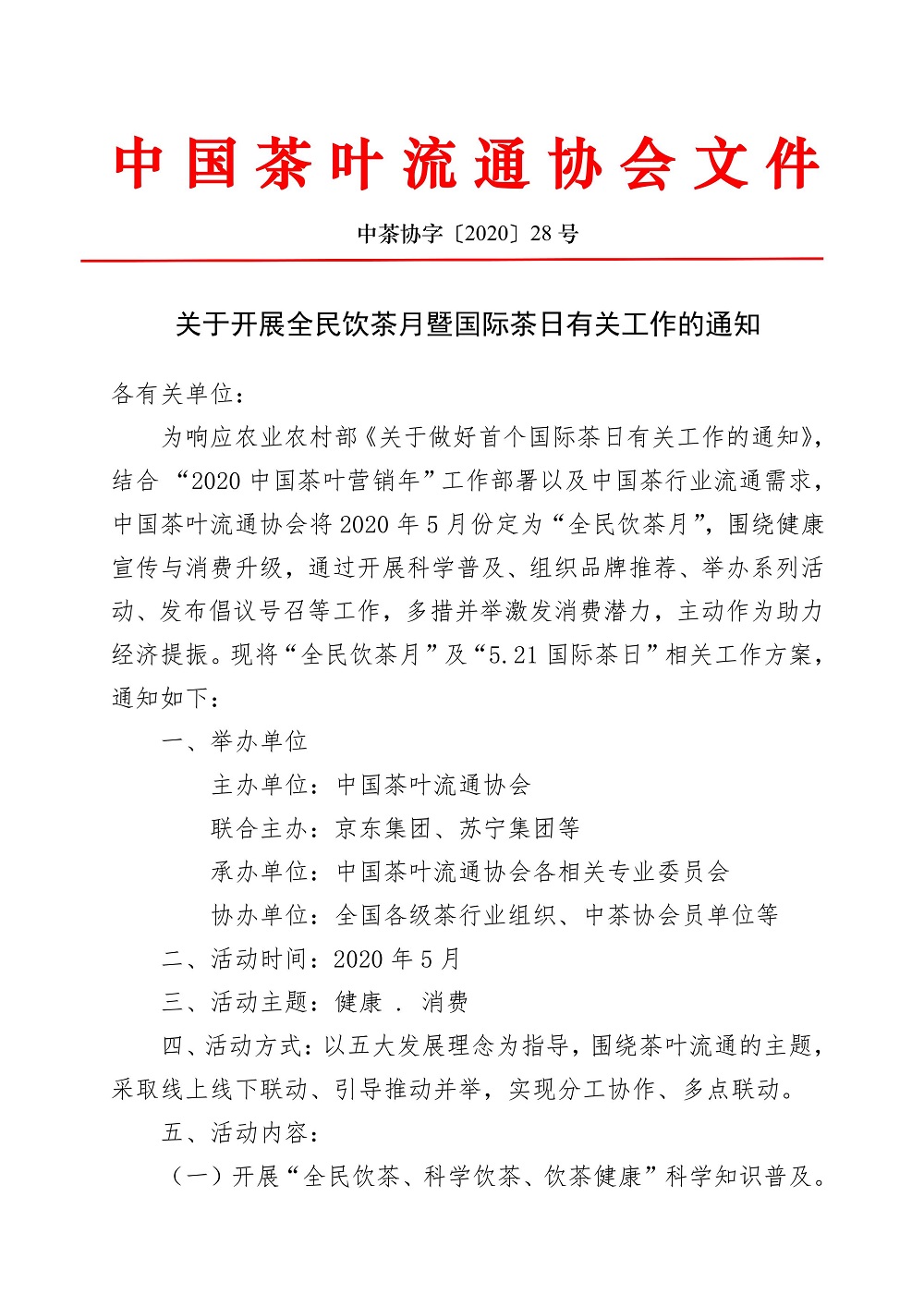 关于开展全民饮茶月暨国际茶日有关工作的通知