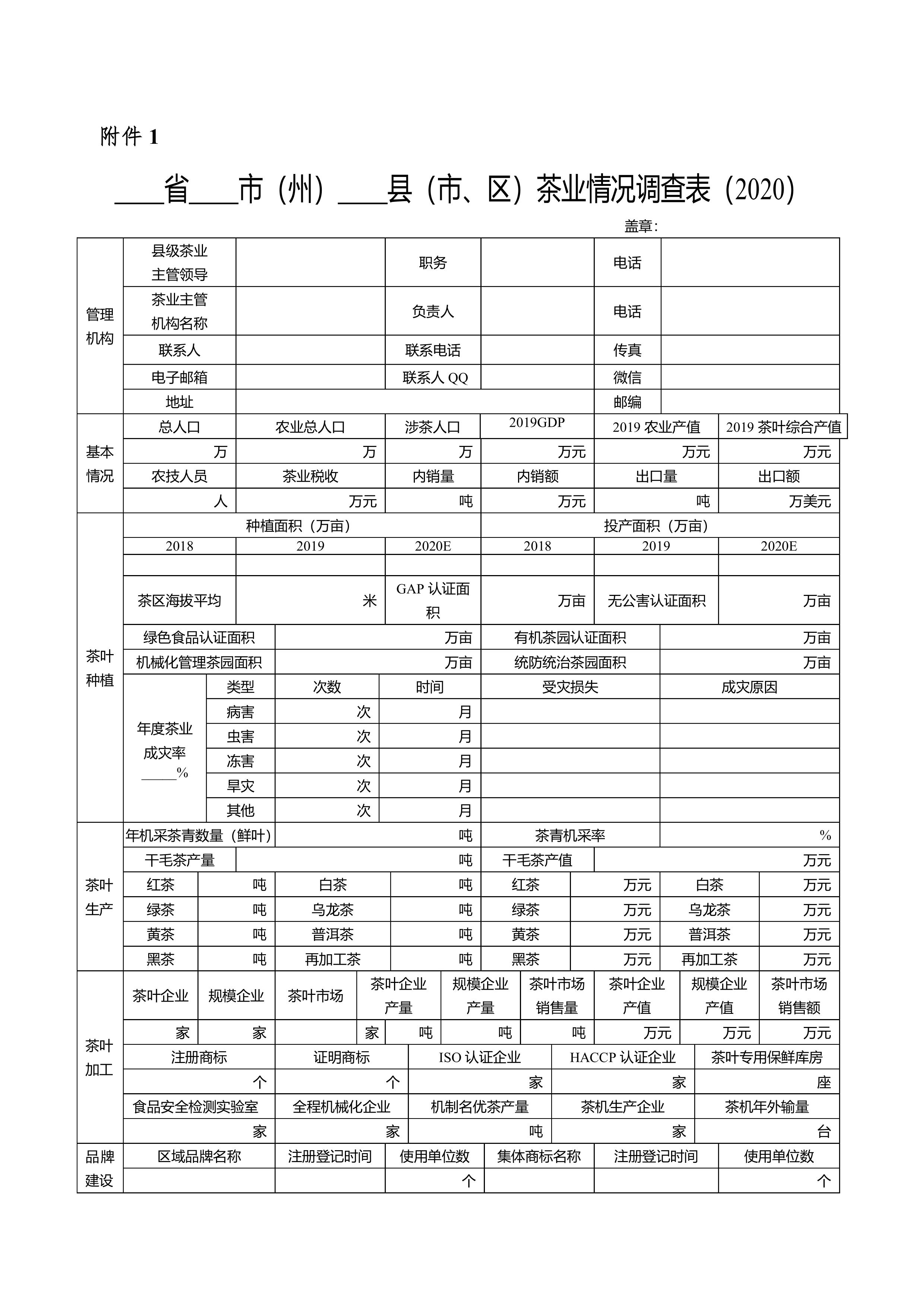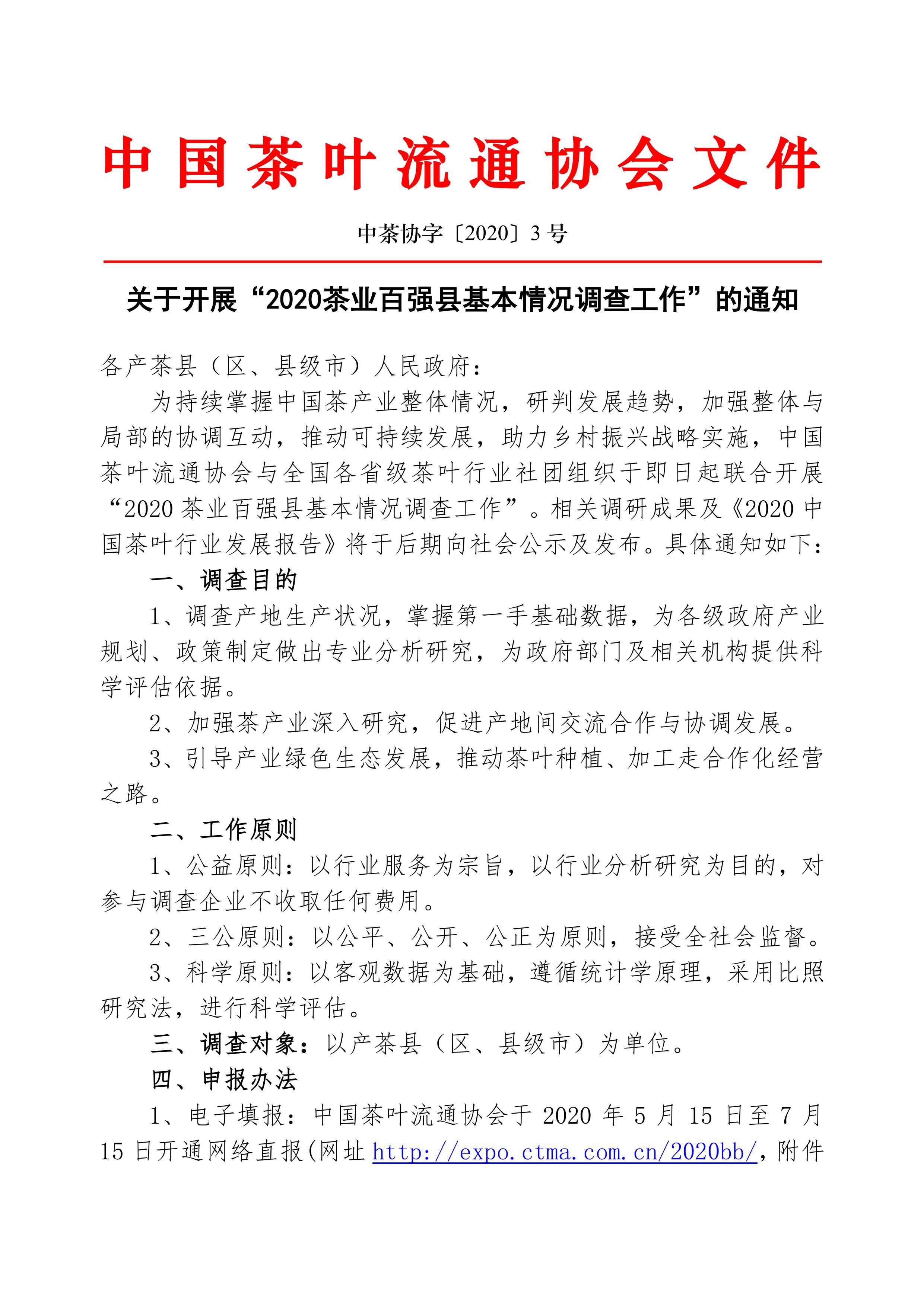 关于开展“2020茶业百强县基本情况调查工作”的通知
