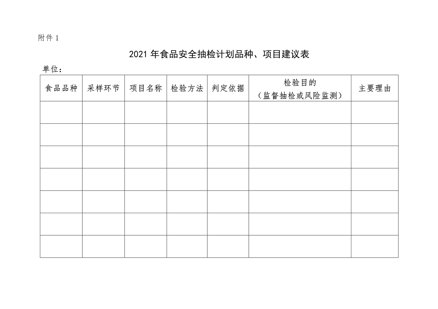 附件1:2021年食品安全抽检计划品种、项目建议表