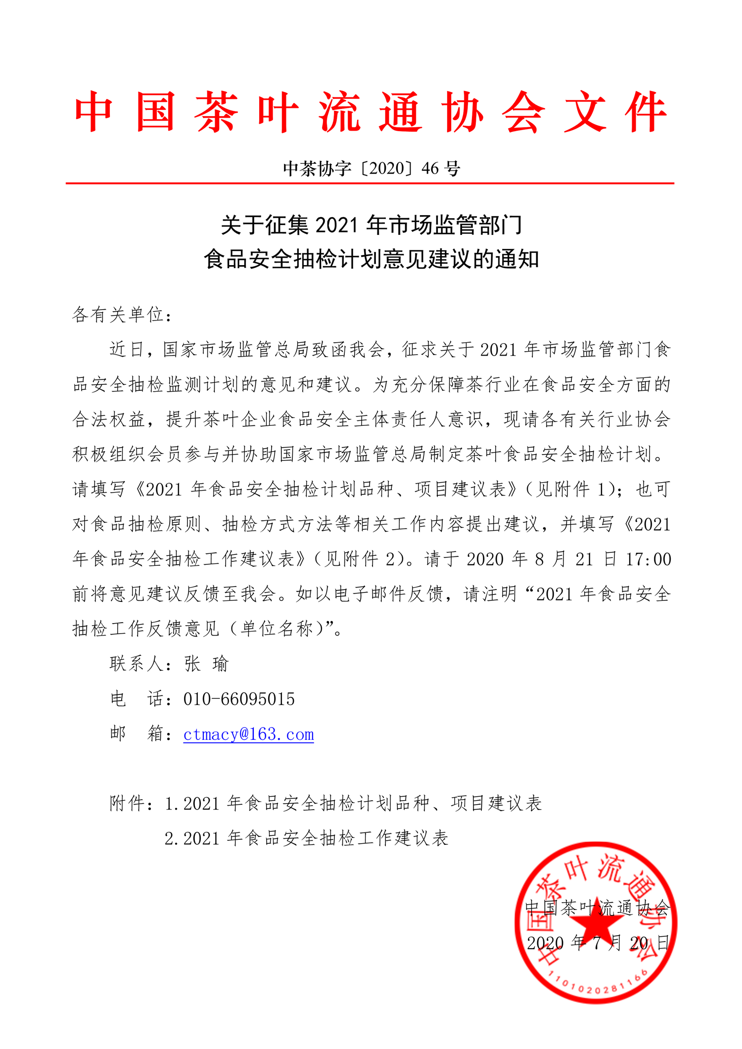 关于组织参加市场监管总局2021年市场监管部门食品安全抽检监测计划建议的通知