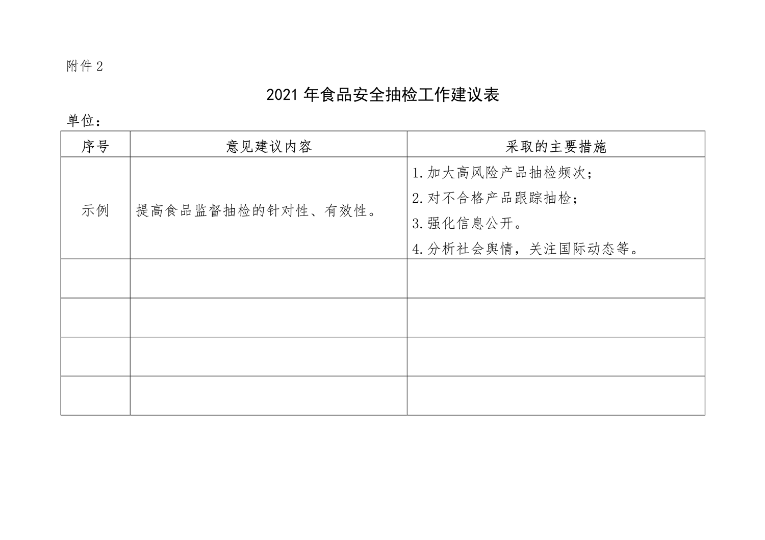 附件2:2021年食品安全抽检工作建议表