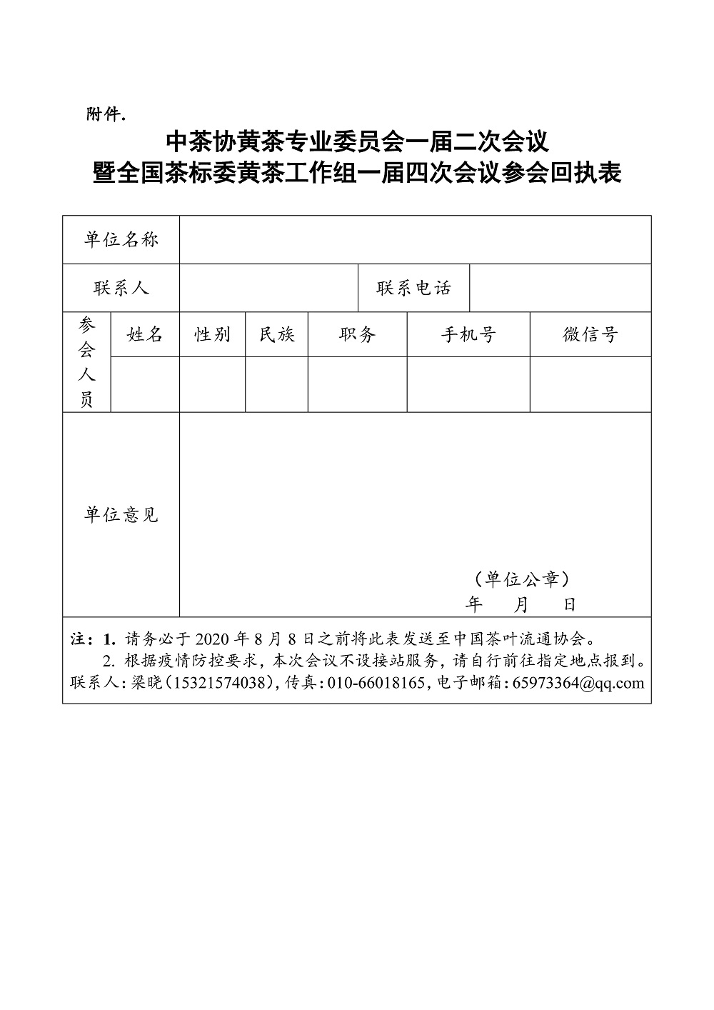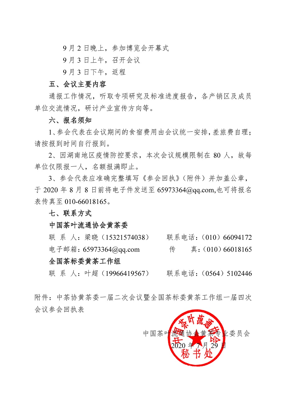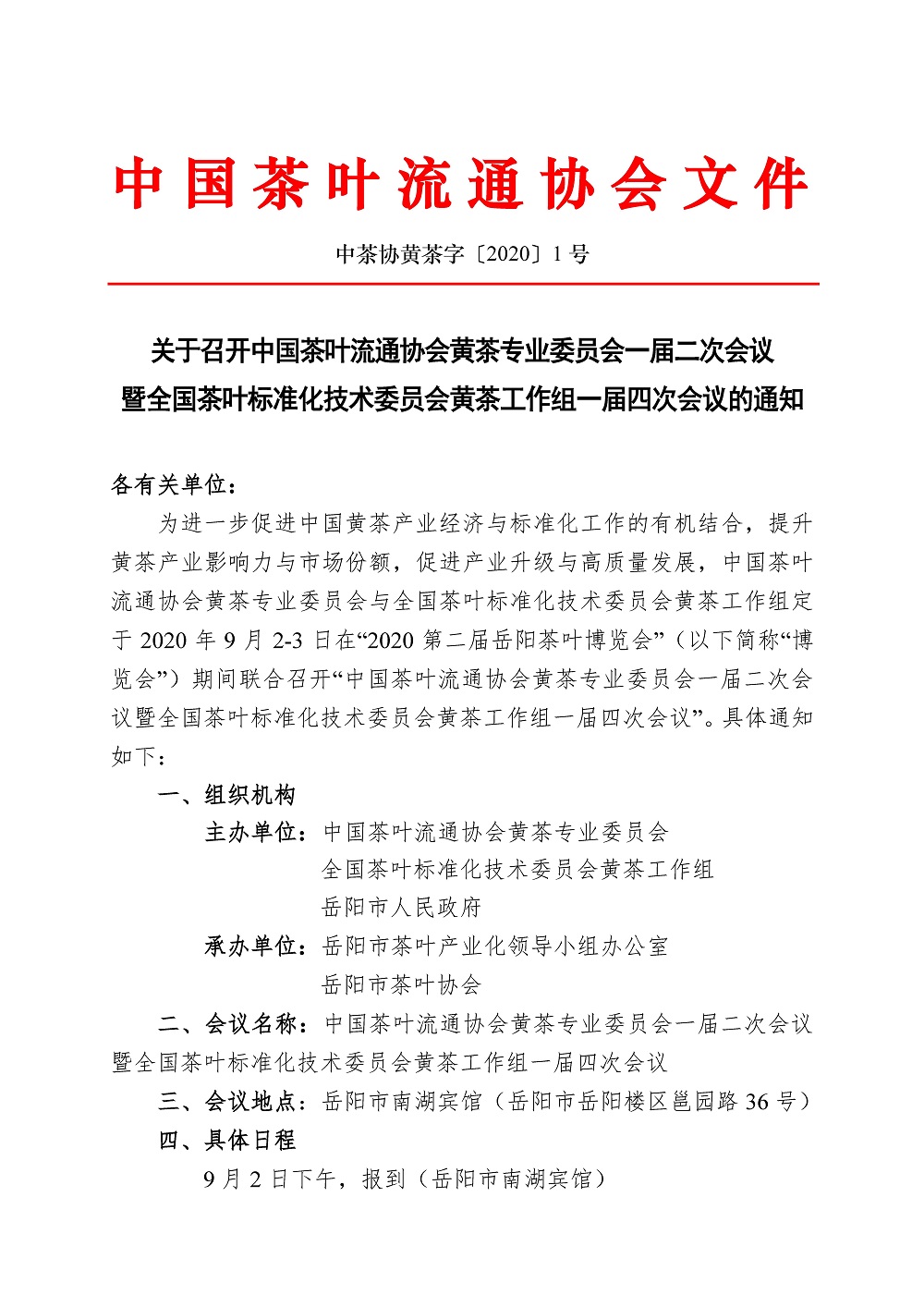关于召开2020中茶协黄茶委会议暨全国茶标委黄茶工作组会议的通知