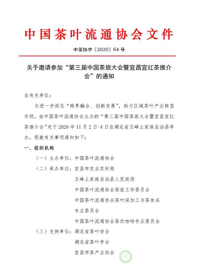 关于邀请参加“第三届中国茶旅大会暨宜昌宜红茶推介会”的通知
