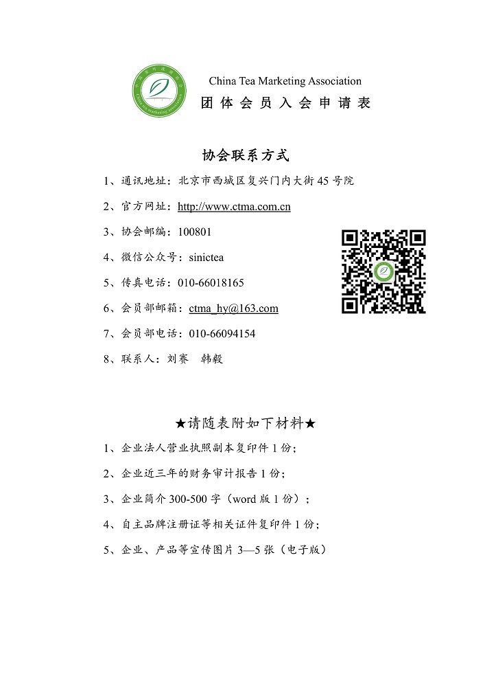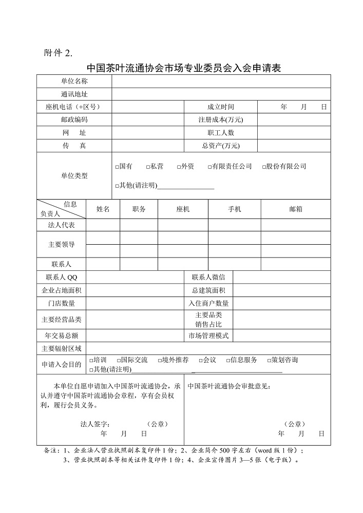 中国茶叶流通协会茶叶市场专业委员会入会申请表