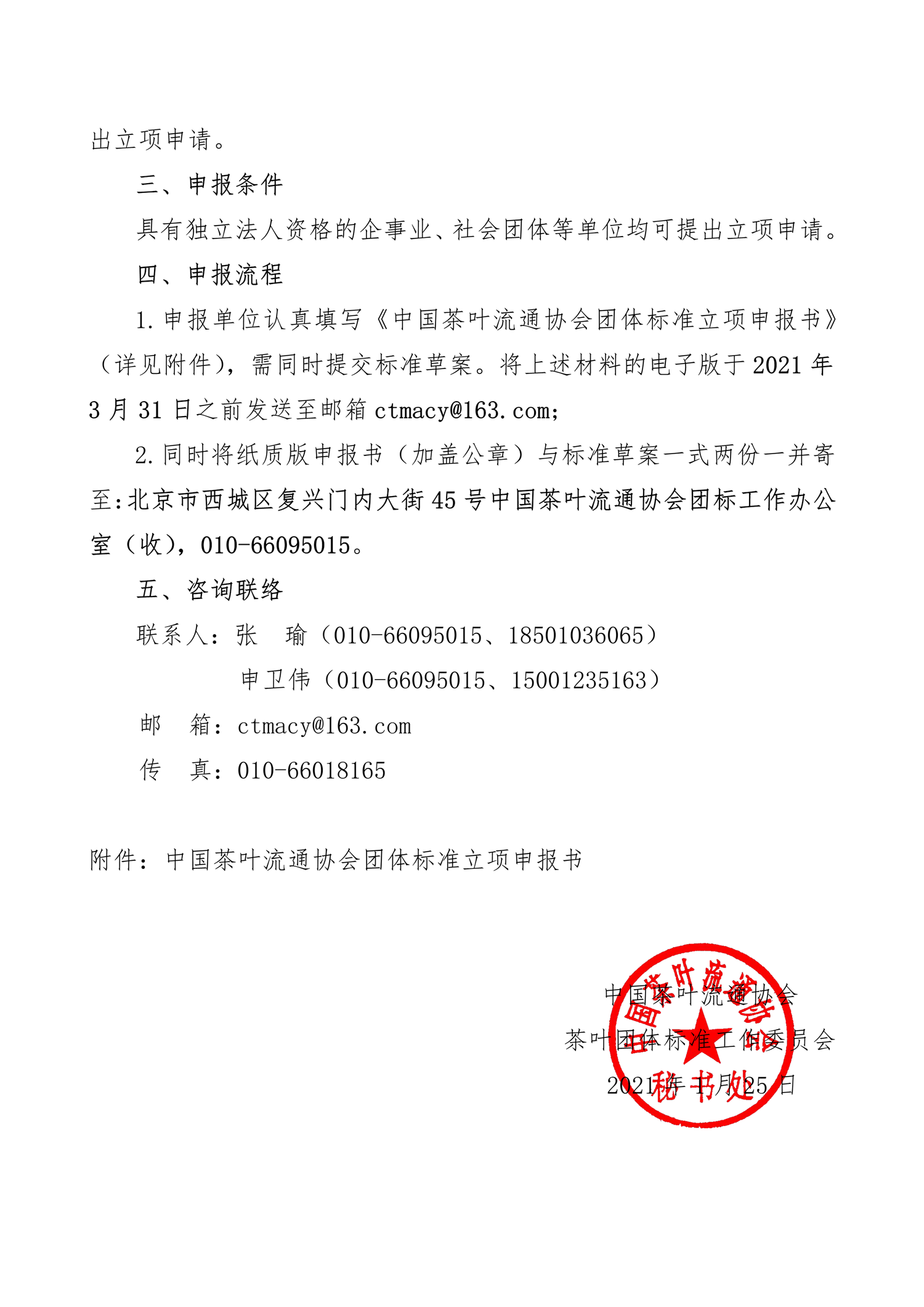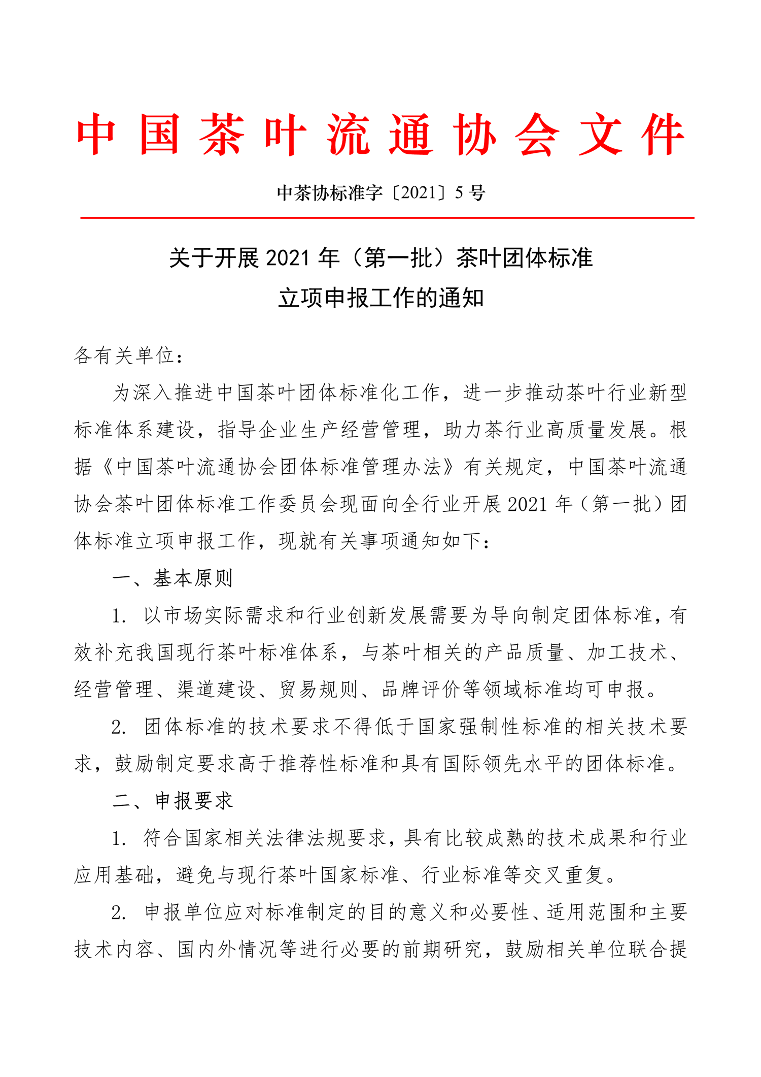 关于开展2021年(第一批)茶叶团体标准立项申报工作的通知
