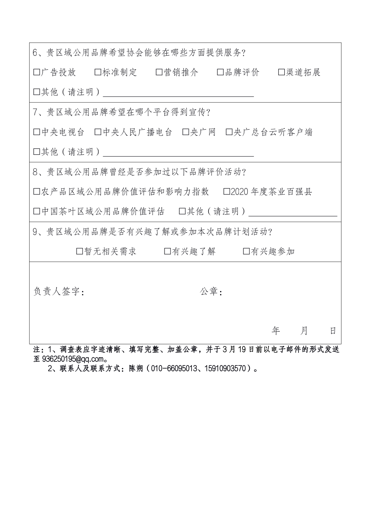 关于开展茶叶区域公用品牌发展服务需求调查的通知