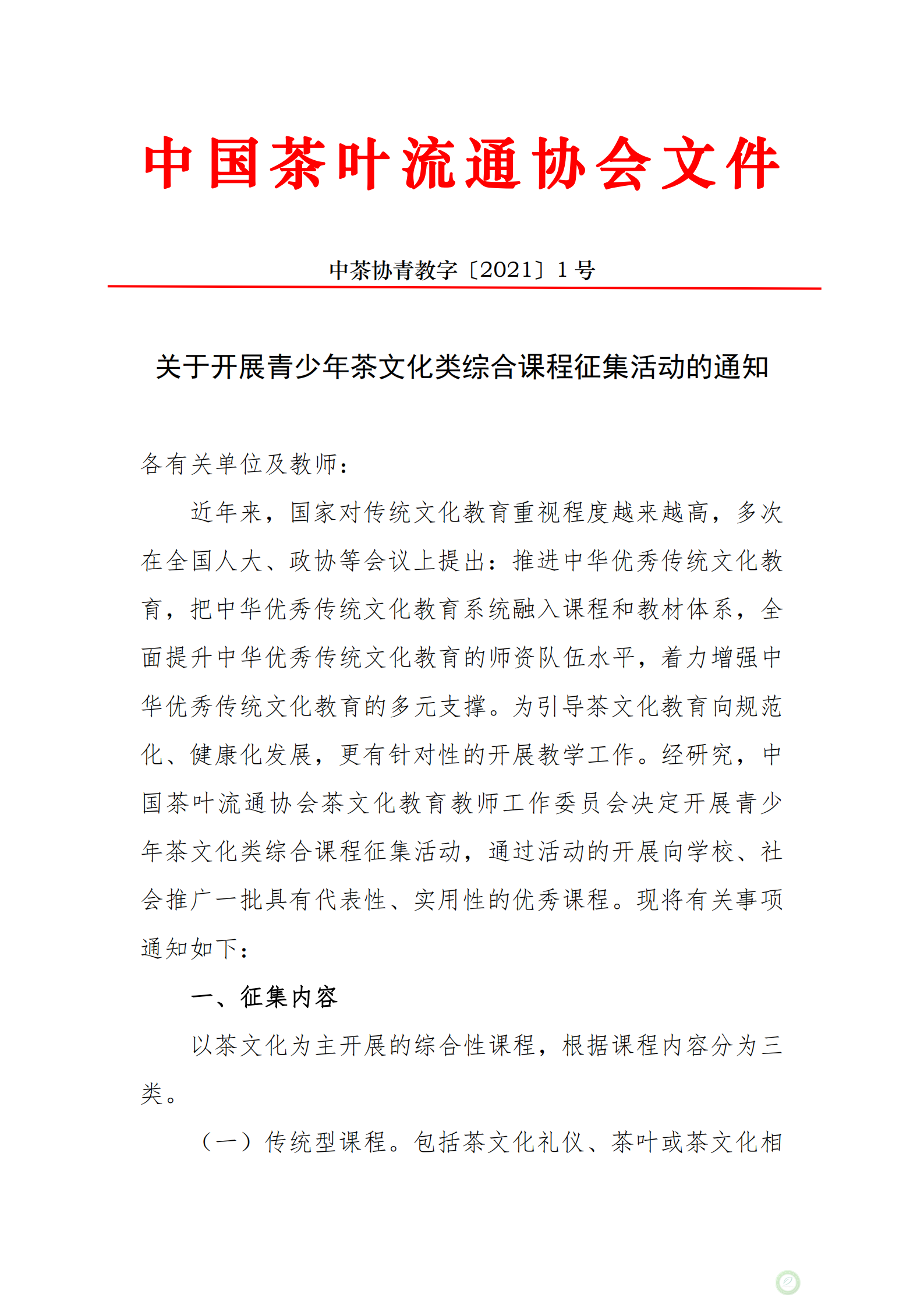 关于举办2021中国茶旅(食在茶乡)推选活动的通知