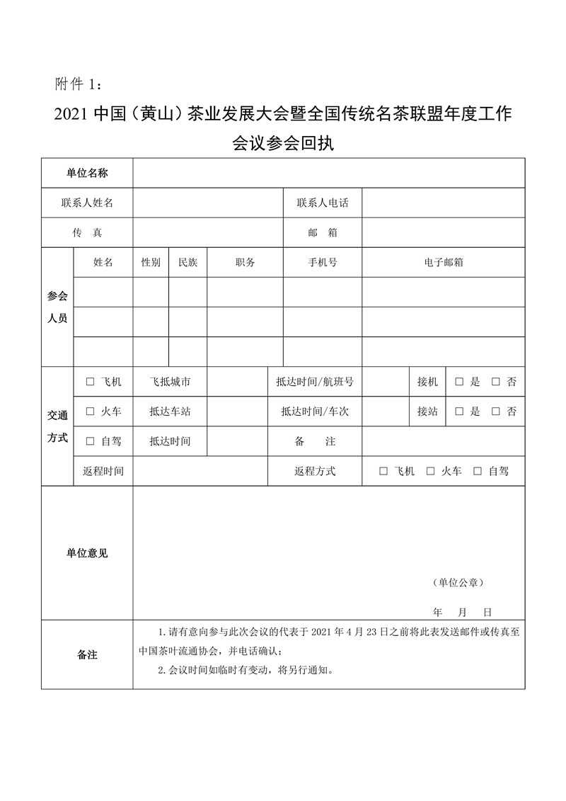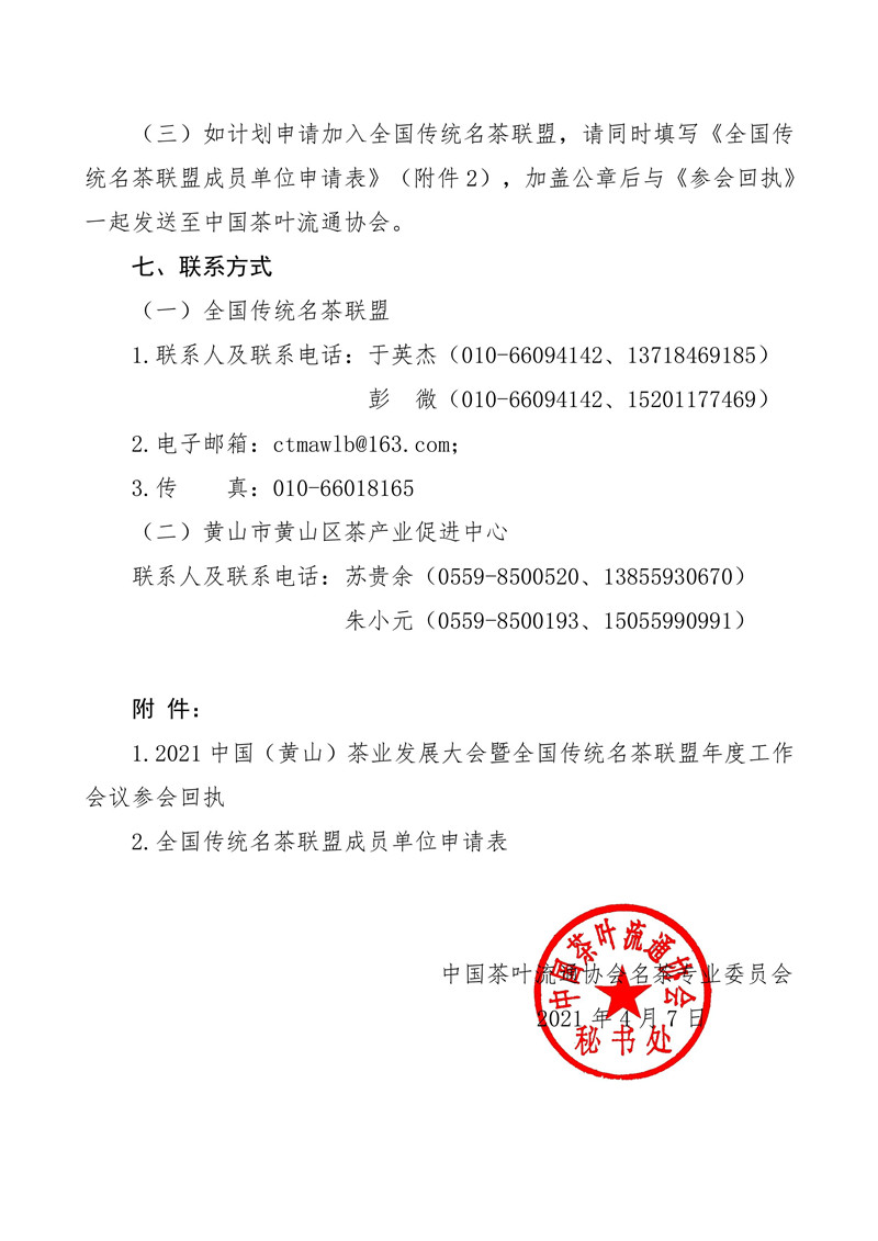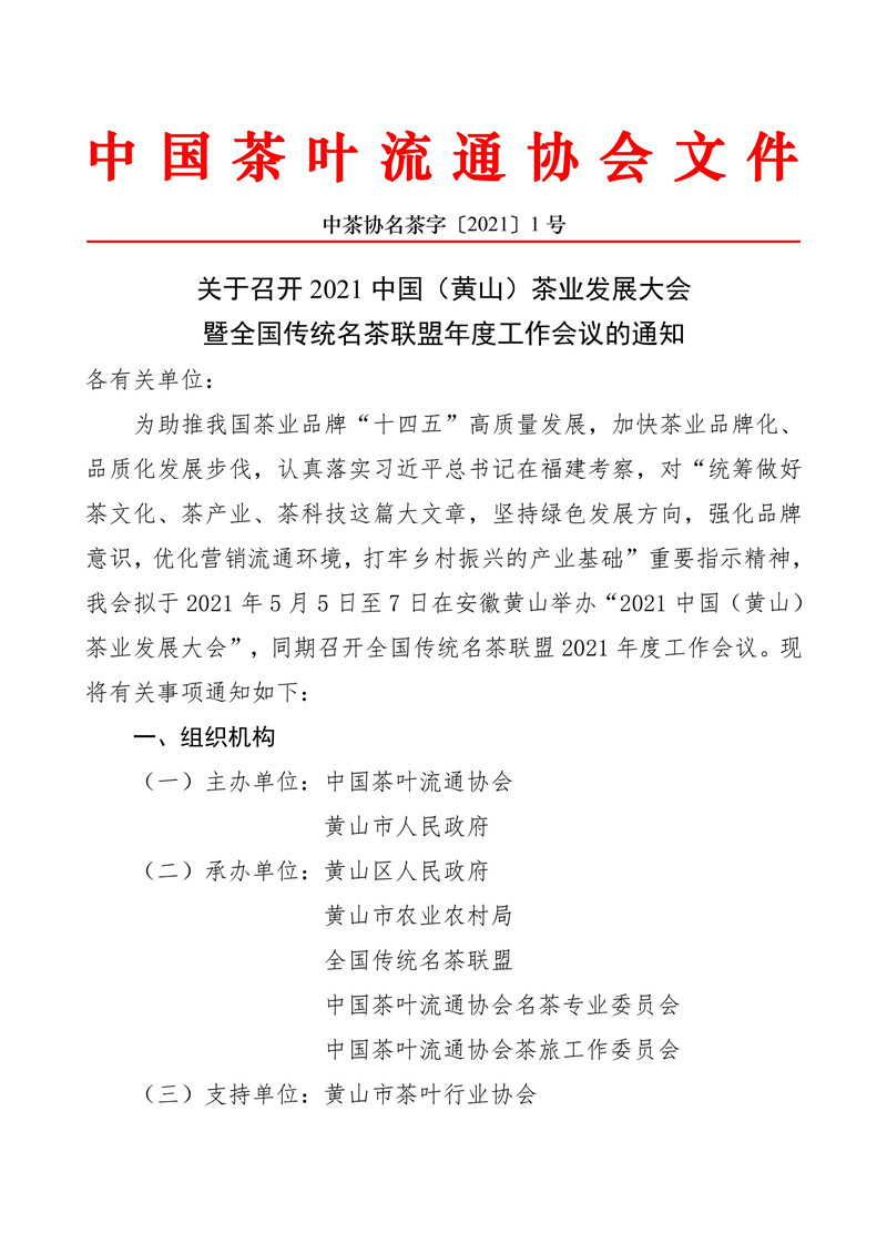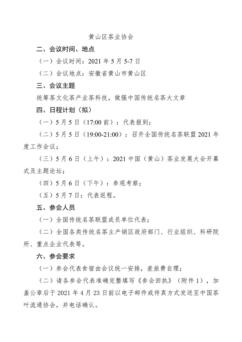 关于召开2021中国(黄山)茶业发展大会暨全国传统名茶联盟年度工作会议的通知