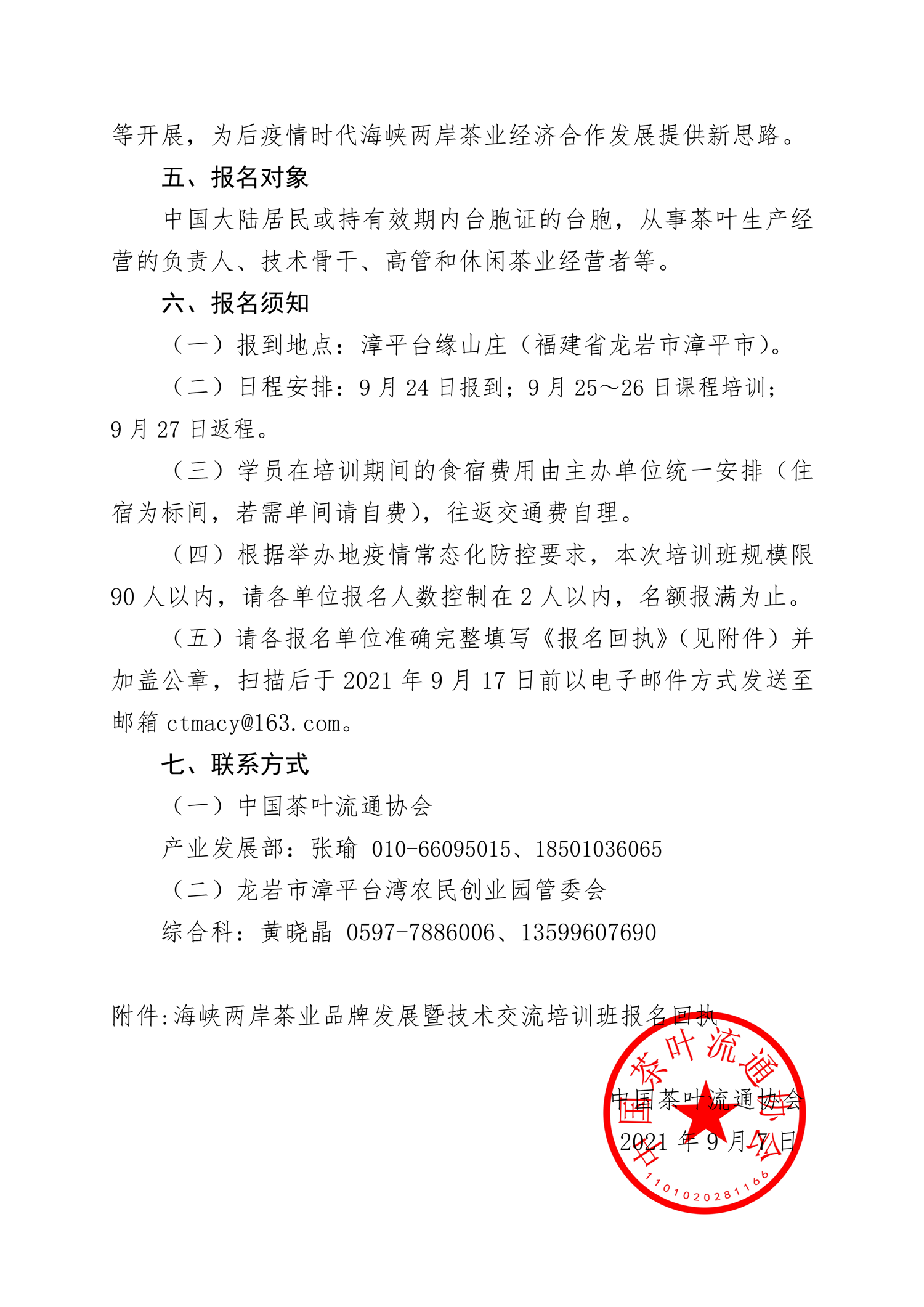 关于邀请参加海峡两岸茶业品牌发展暨技术交流培训班的通知