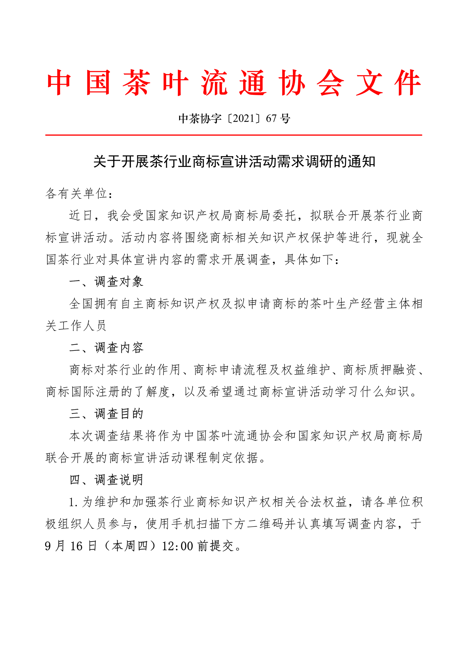 关于开展茶行业商标宣讲活动需求调研的通知