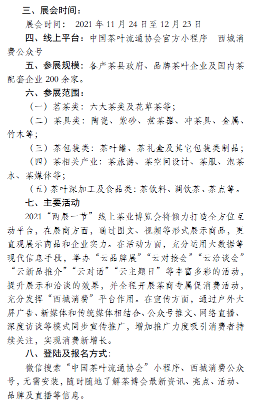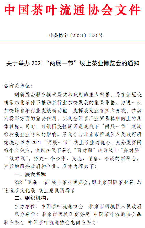 关于举办2021“两展一节”线上茶业博览会的通知