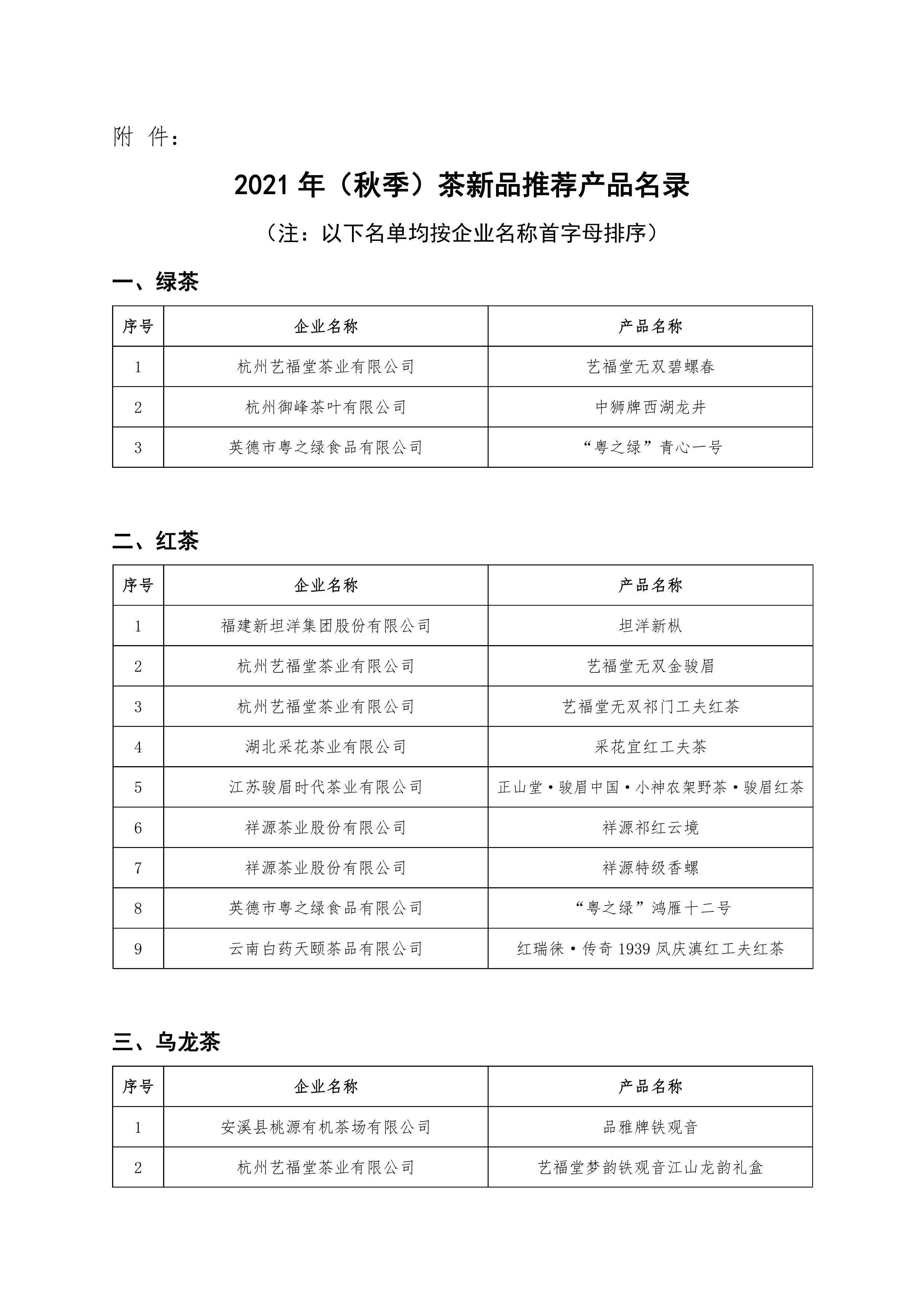 关于公布中国茶业品牌计划——2021年(秋季)茶新品推荐活动推荐产品名录的通知.pdf