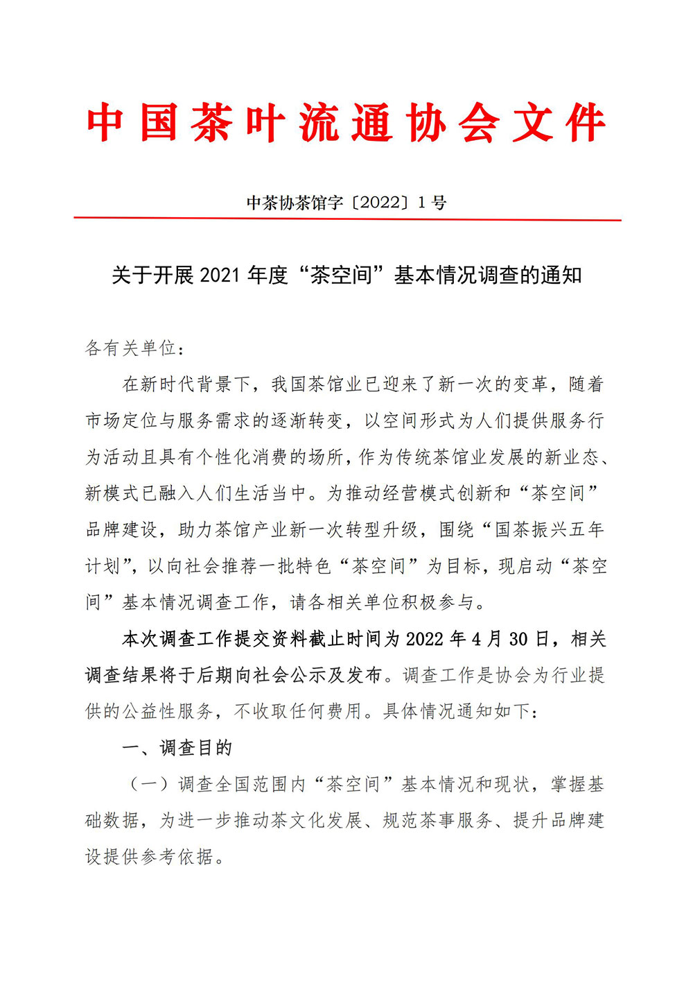 关于招募中国茶叶流通协会茶馆专业委员会委员单位的通知