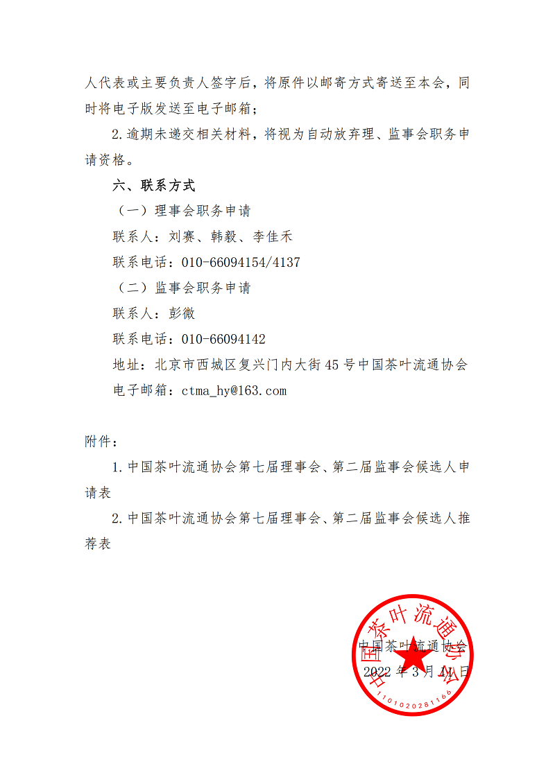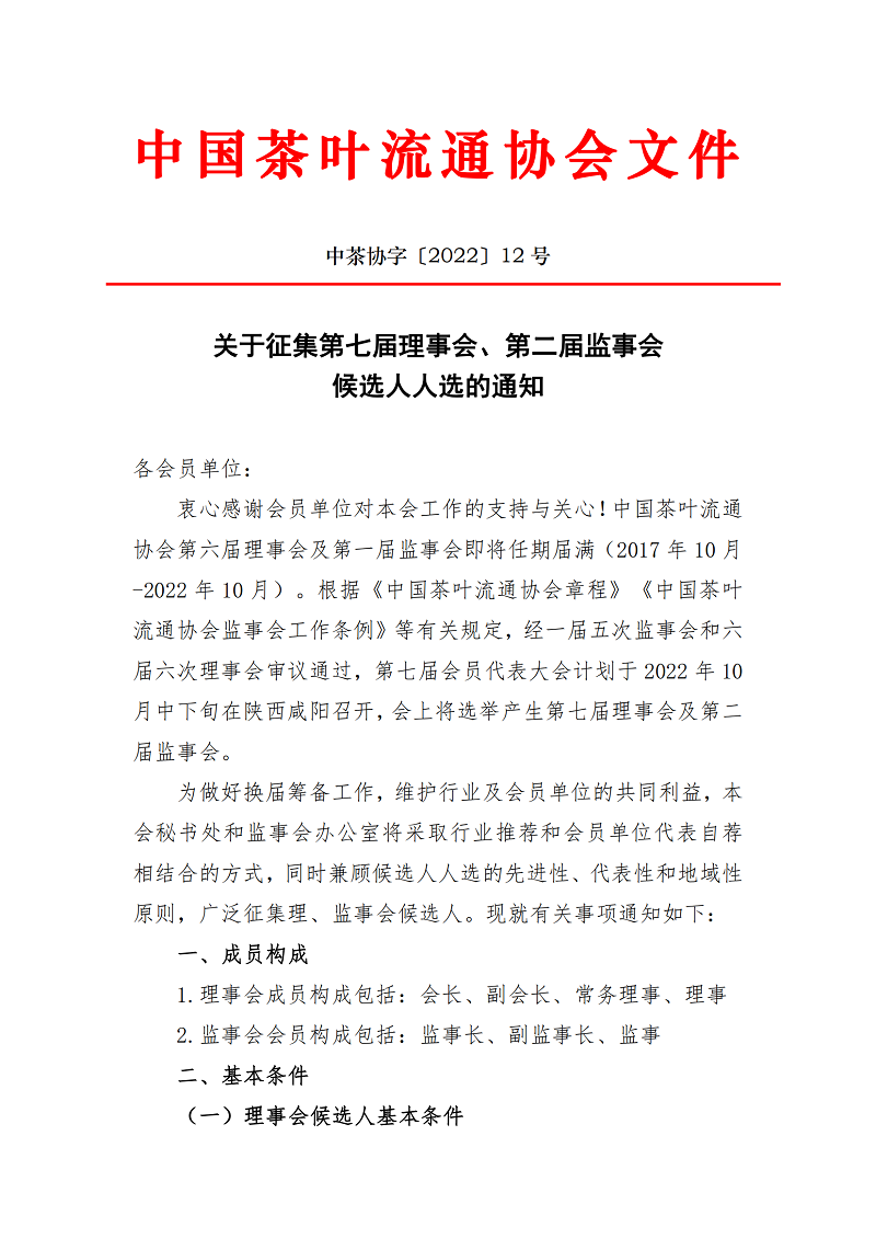 关于征集第七届理事会、第二届监事会 候选人人选的通知