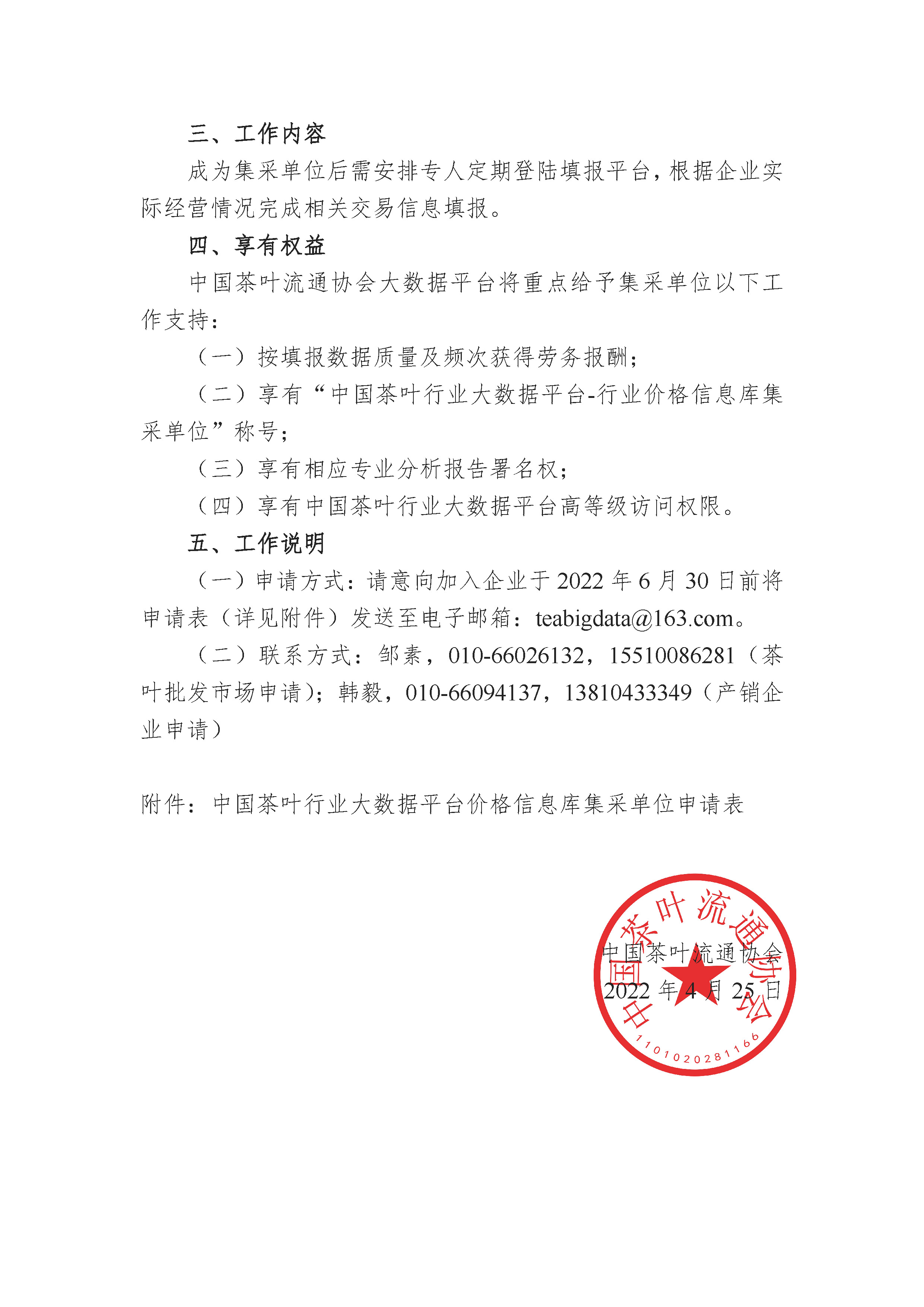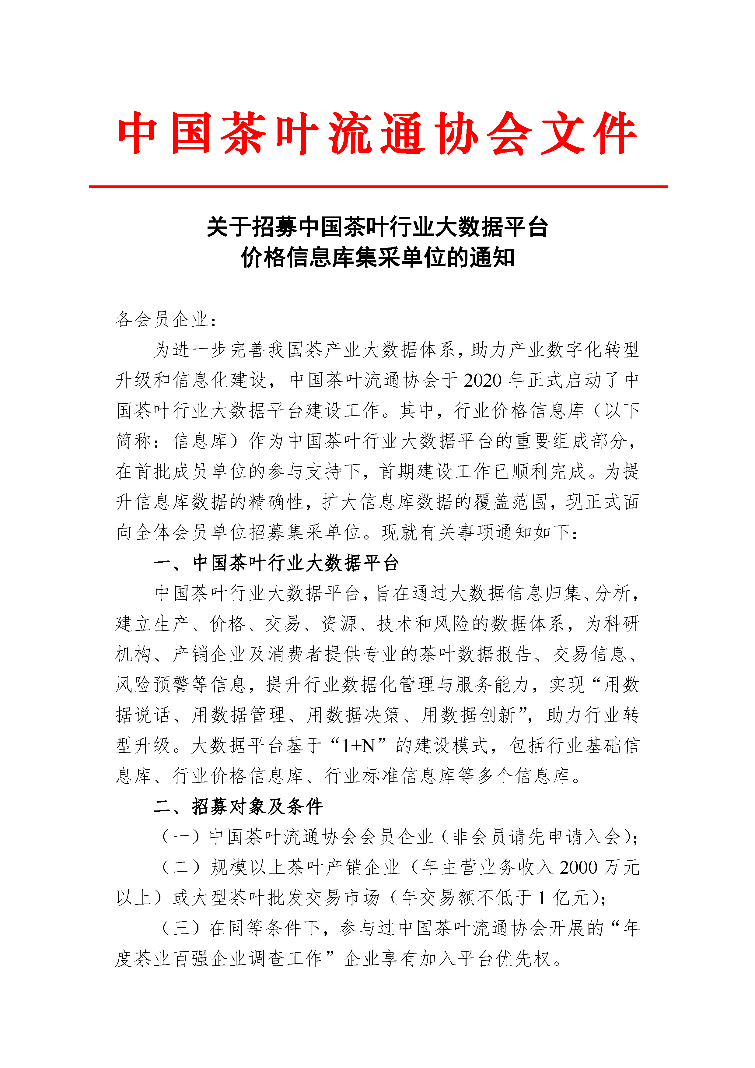 关于招募中国茶叶行业大数据平台价格信息库集采单位的通知