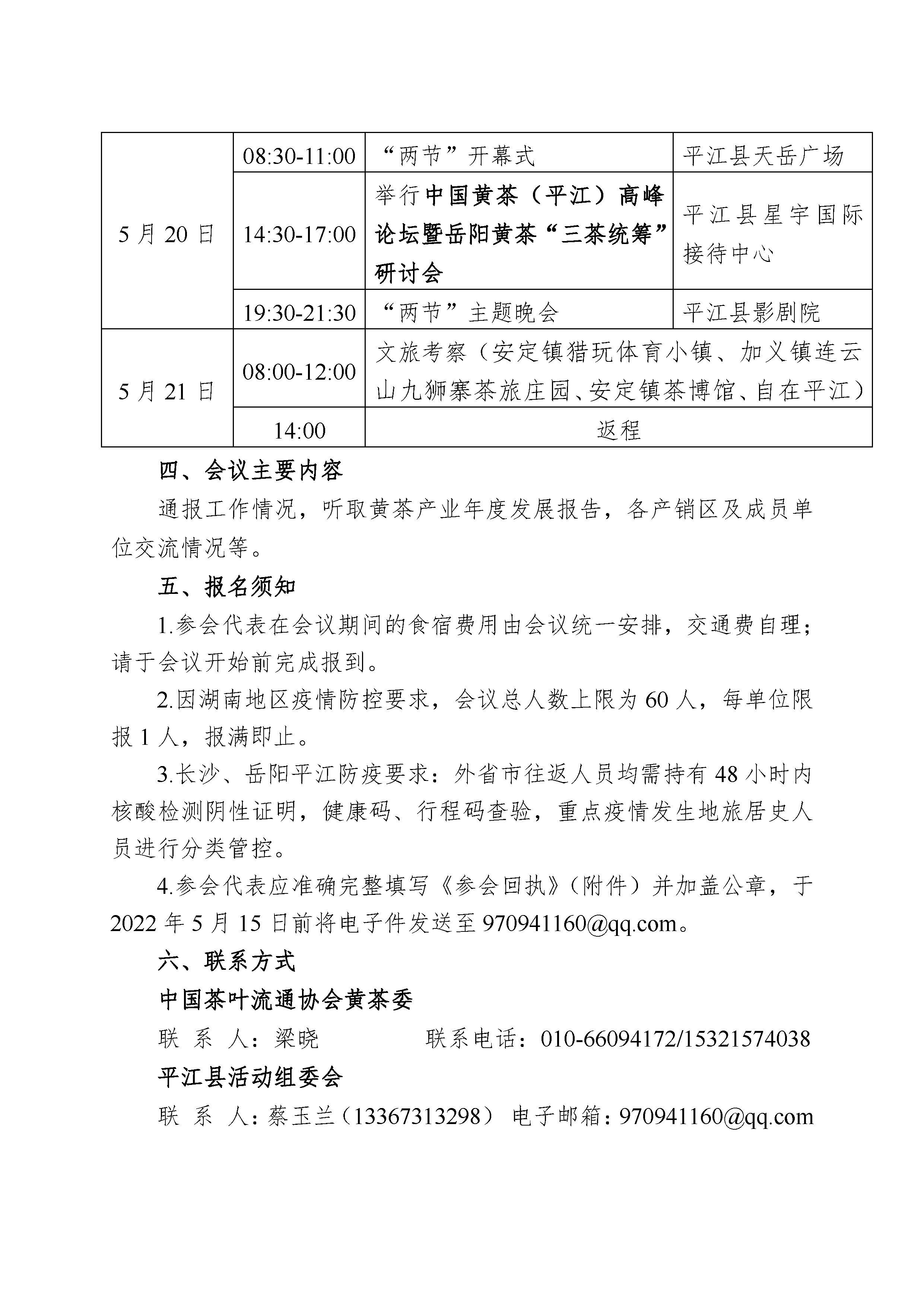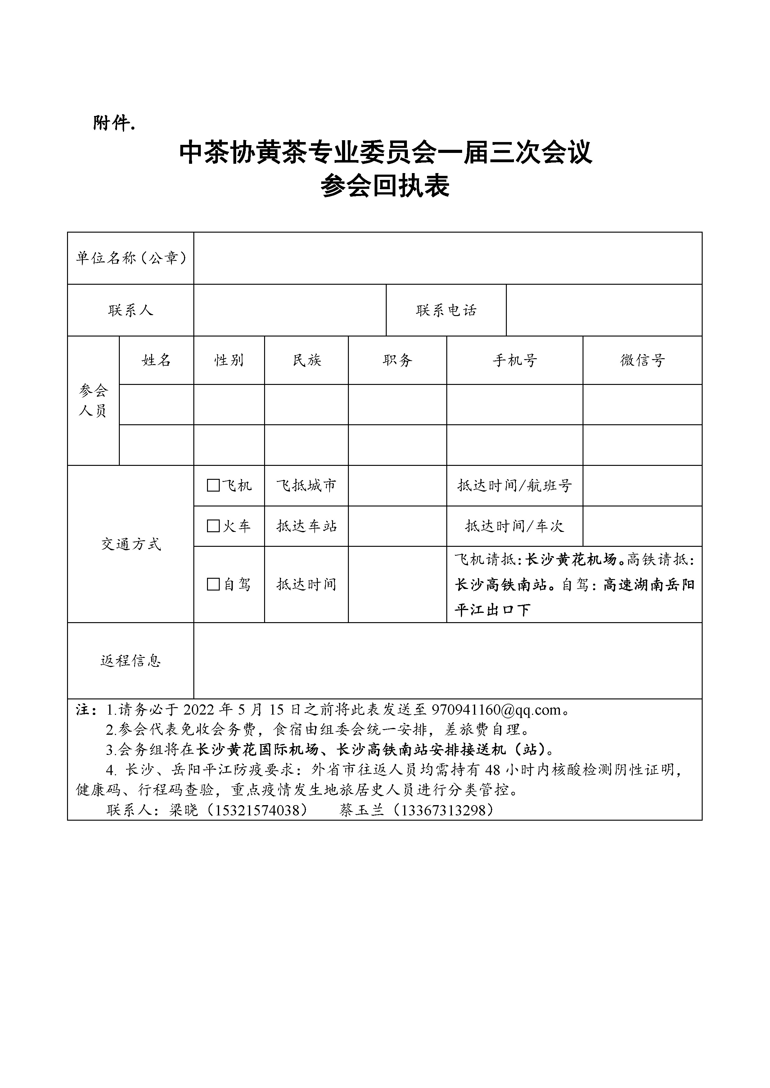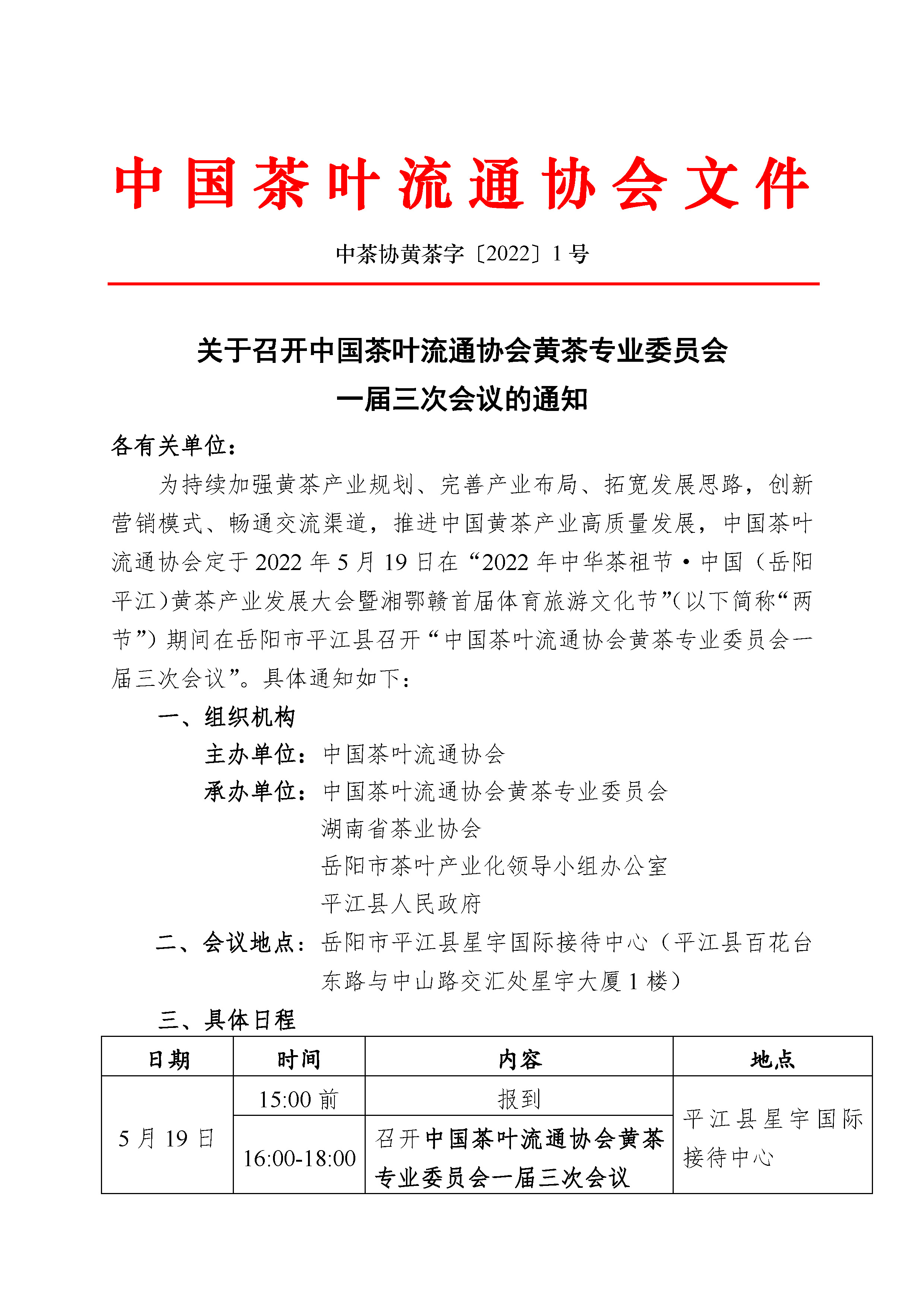 关于召开中国茶叶流通协会黄茶专业委员会一届三次会议的通知