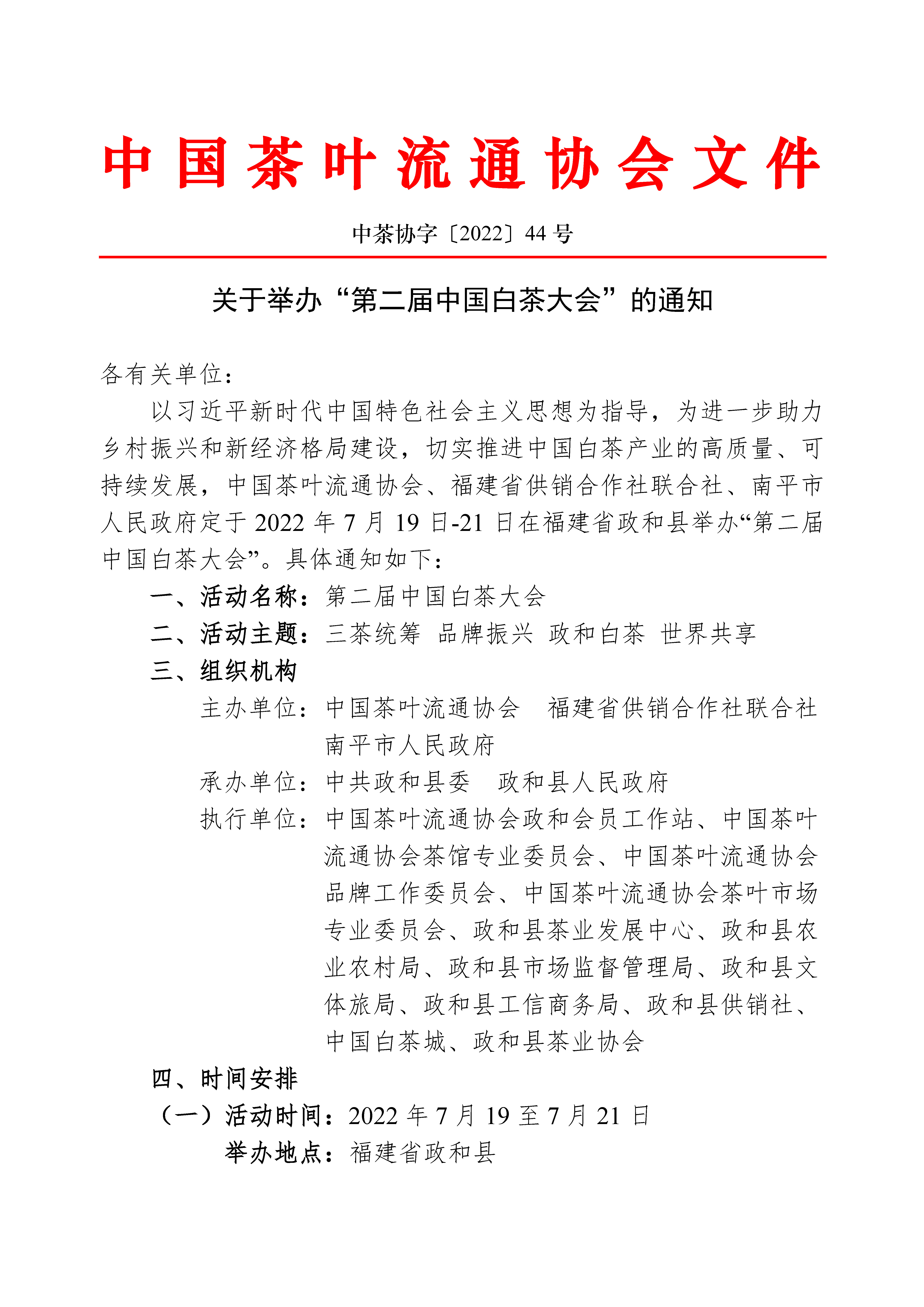 关于举办“第二届中国白茶大会”的通知