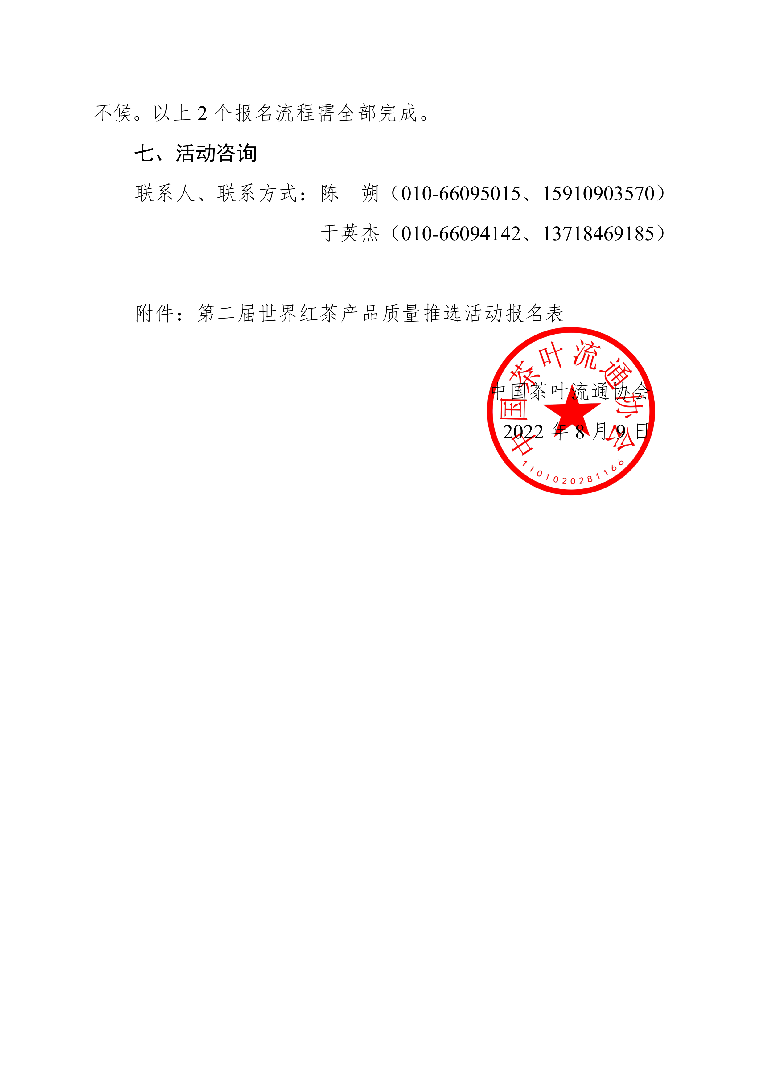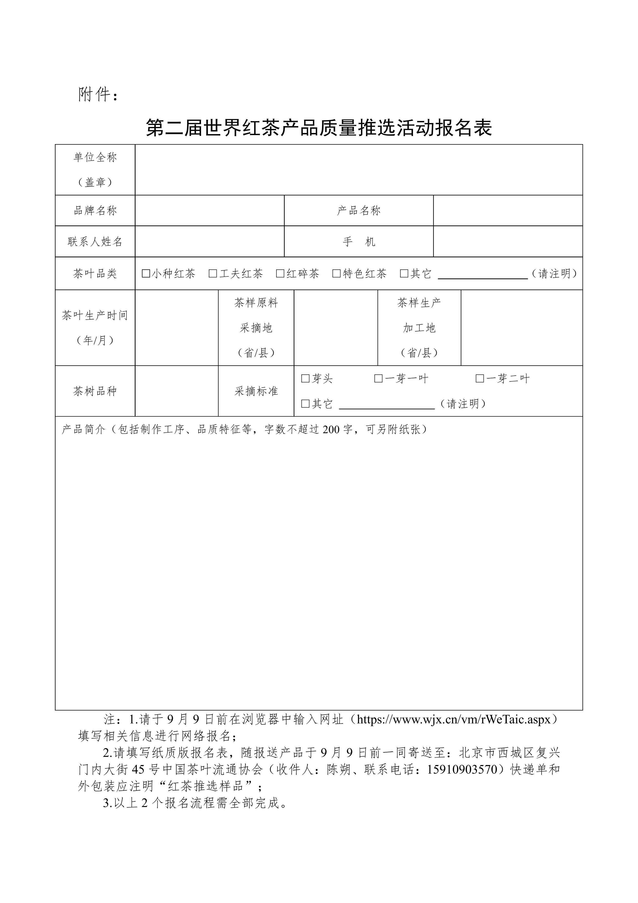 关于邀请参加第二届世界红茶产品质量推选活动的预通知