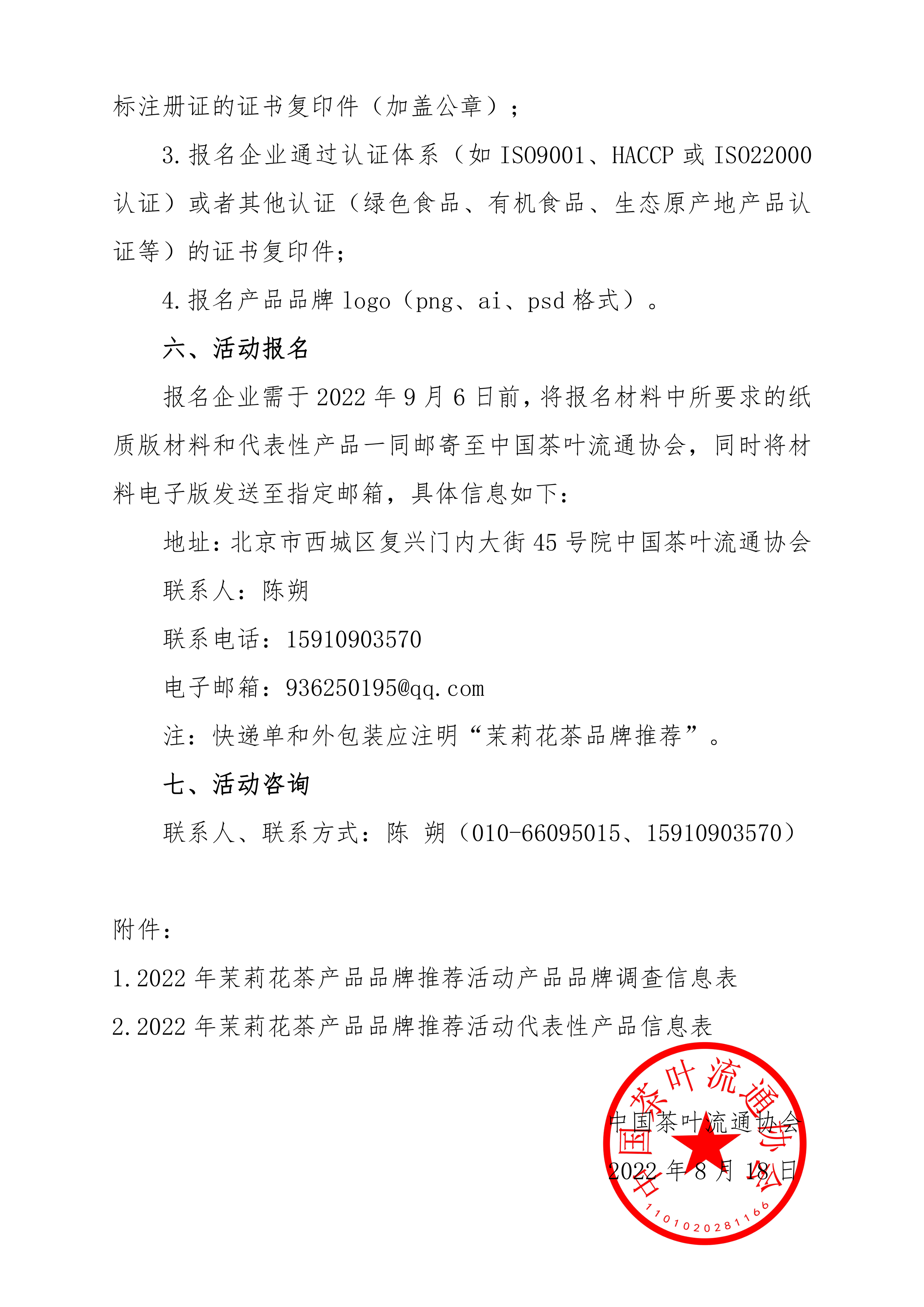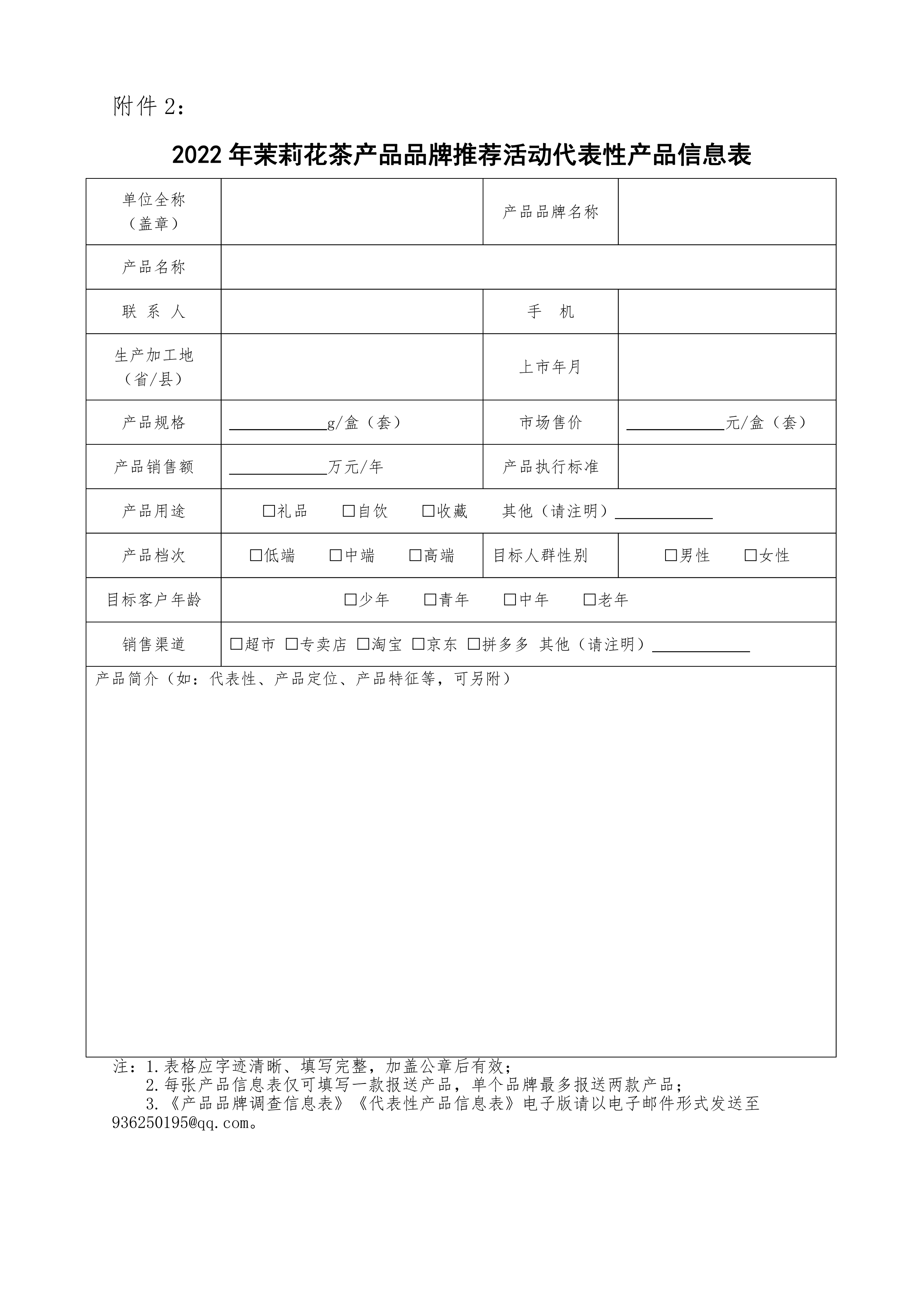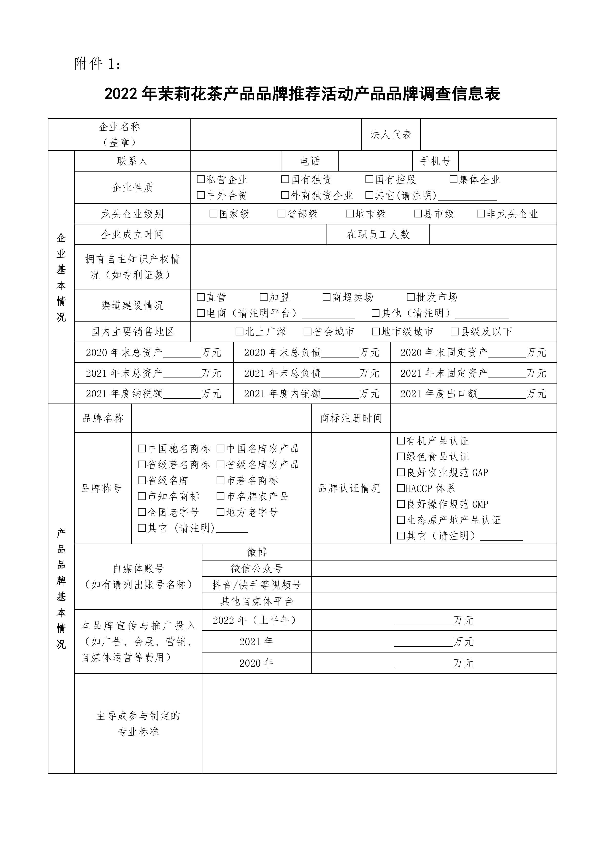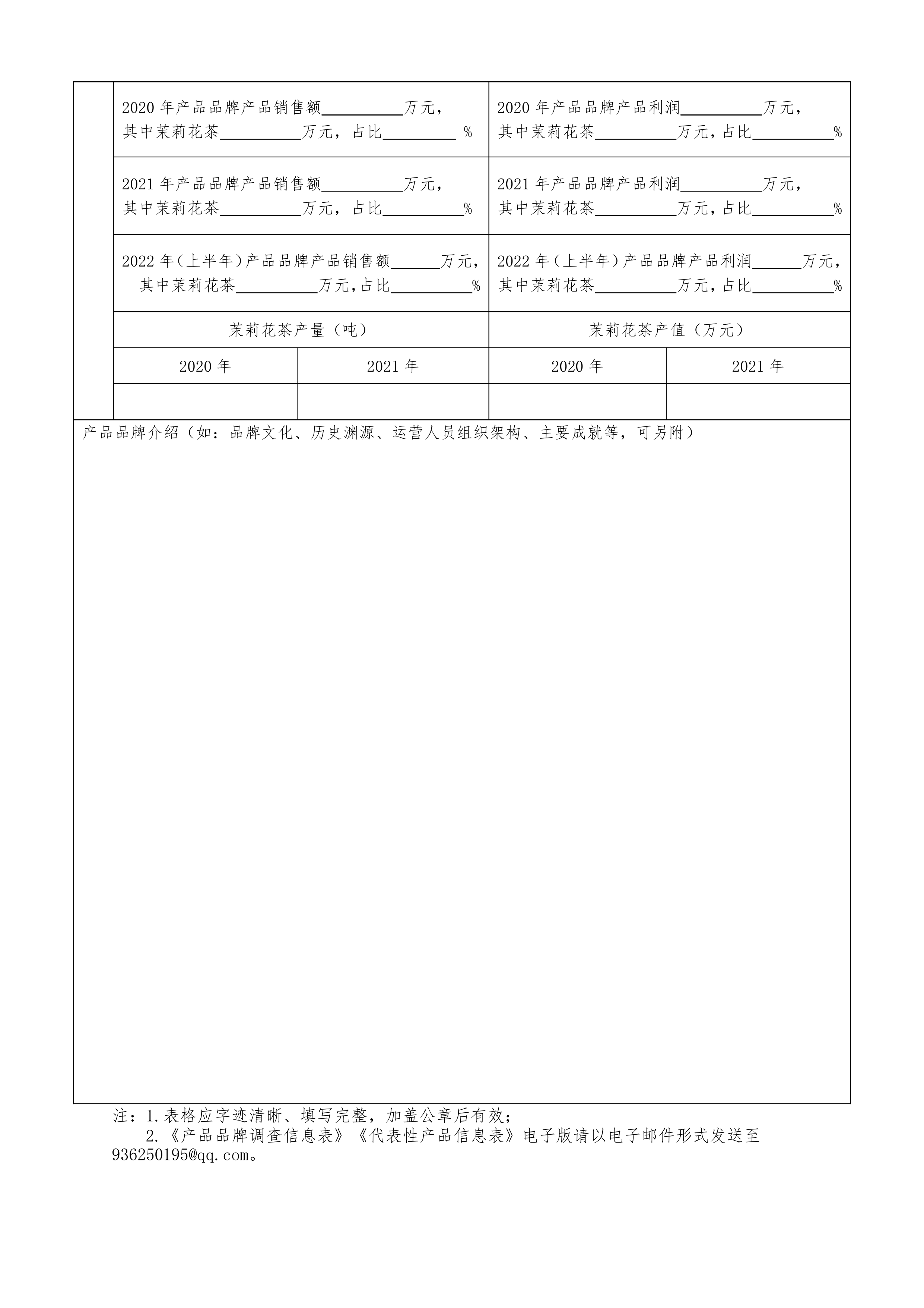 附件1:2022年茉莉花茶产品品牌推荐活动产品品牌调查信息表.docx