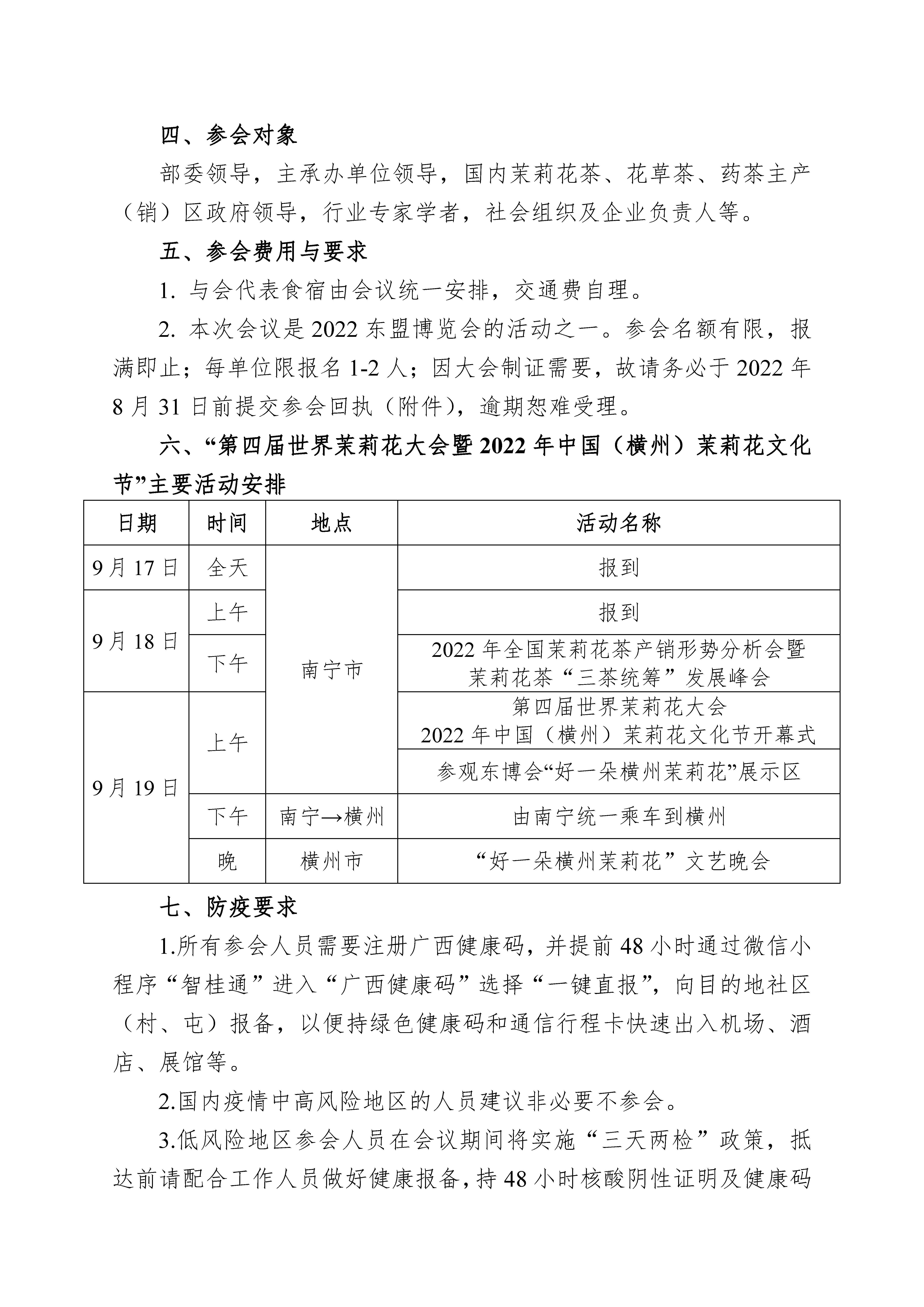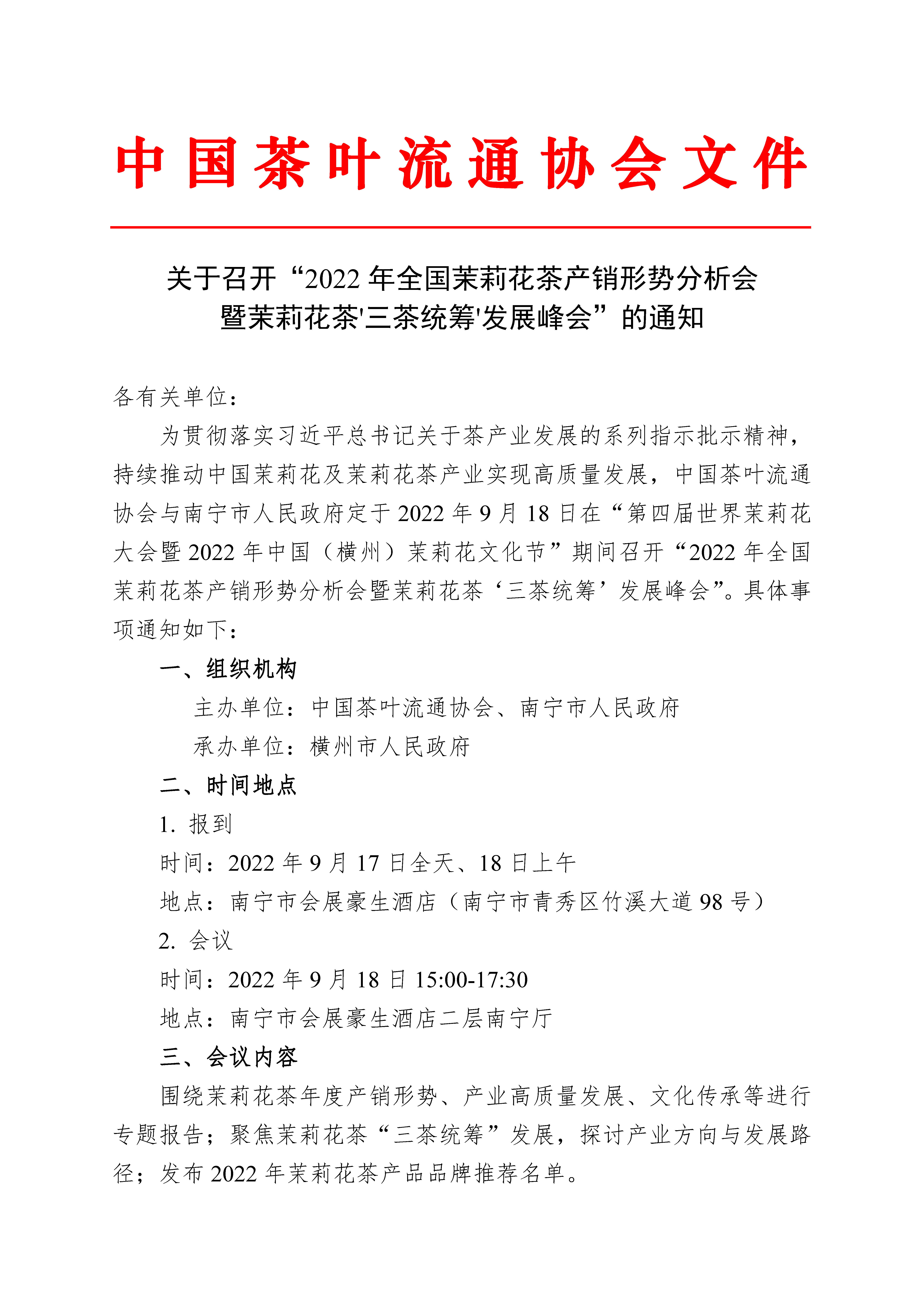 关于召开“2022年全国茉莉花茶产销形势分析会茉莉花茶‘三茶统筹’发展峰会”的通知