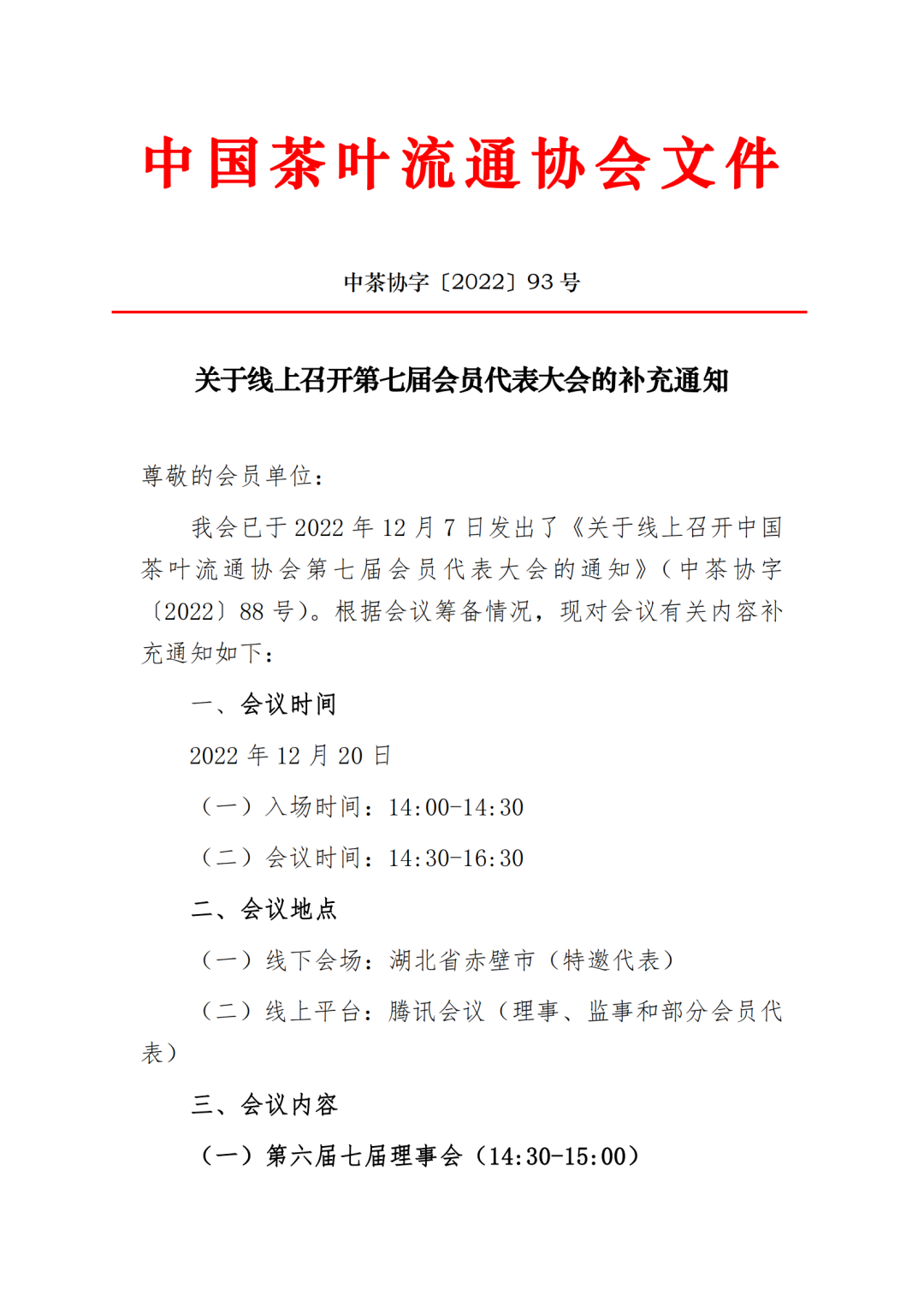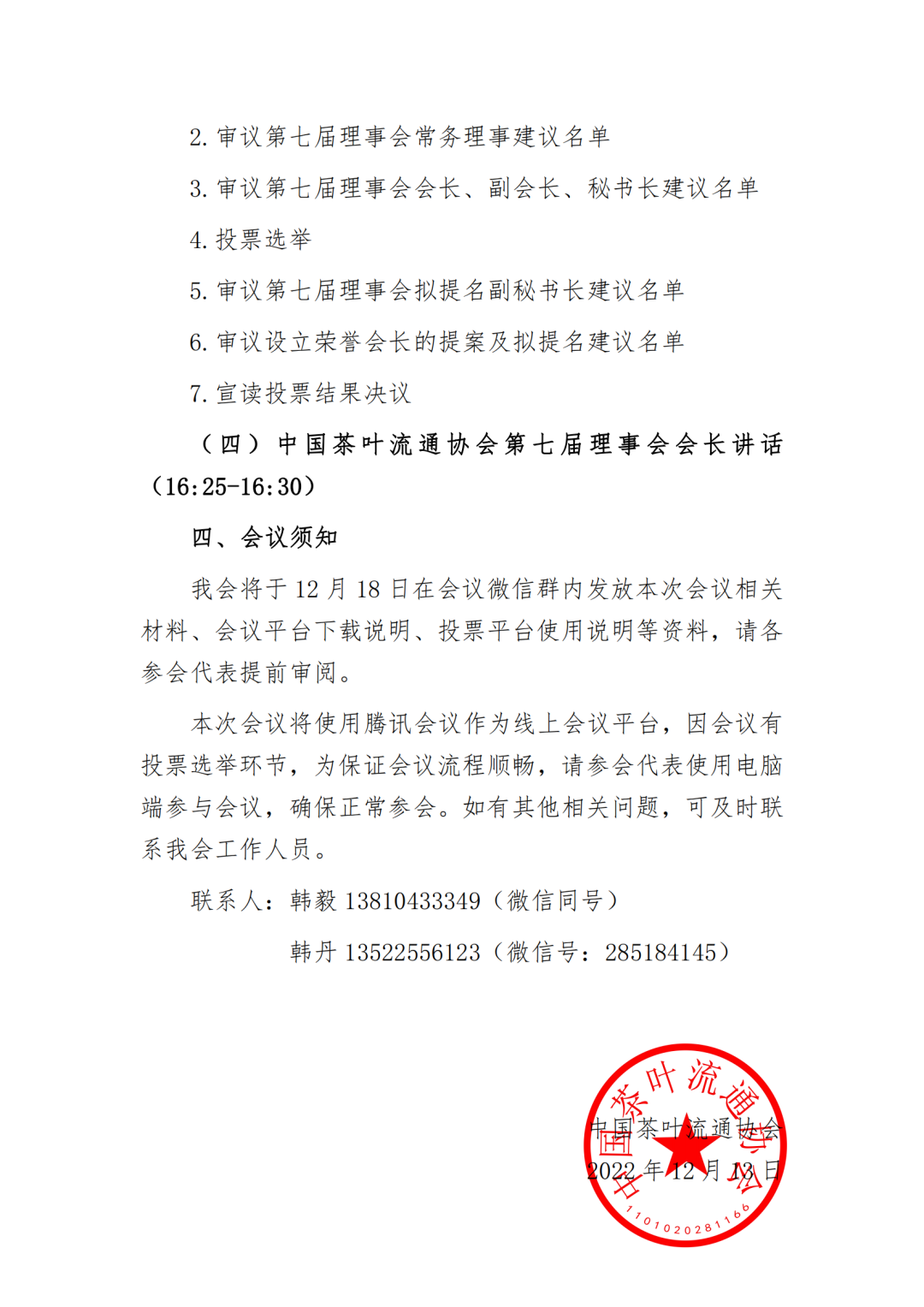 关于中国茶叶流通协会第六届七次理事会通过事项的通知