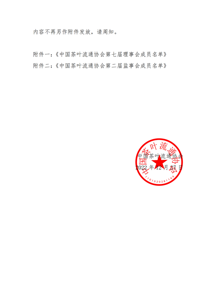 关于中国茶叶流通协会第六届七次理事会通过事项的通知