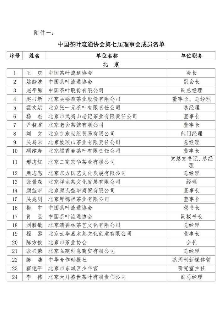 关于中国茶叶流通协会第七届一次理事会通过事项的通知