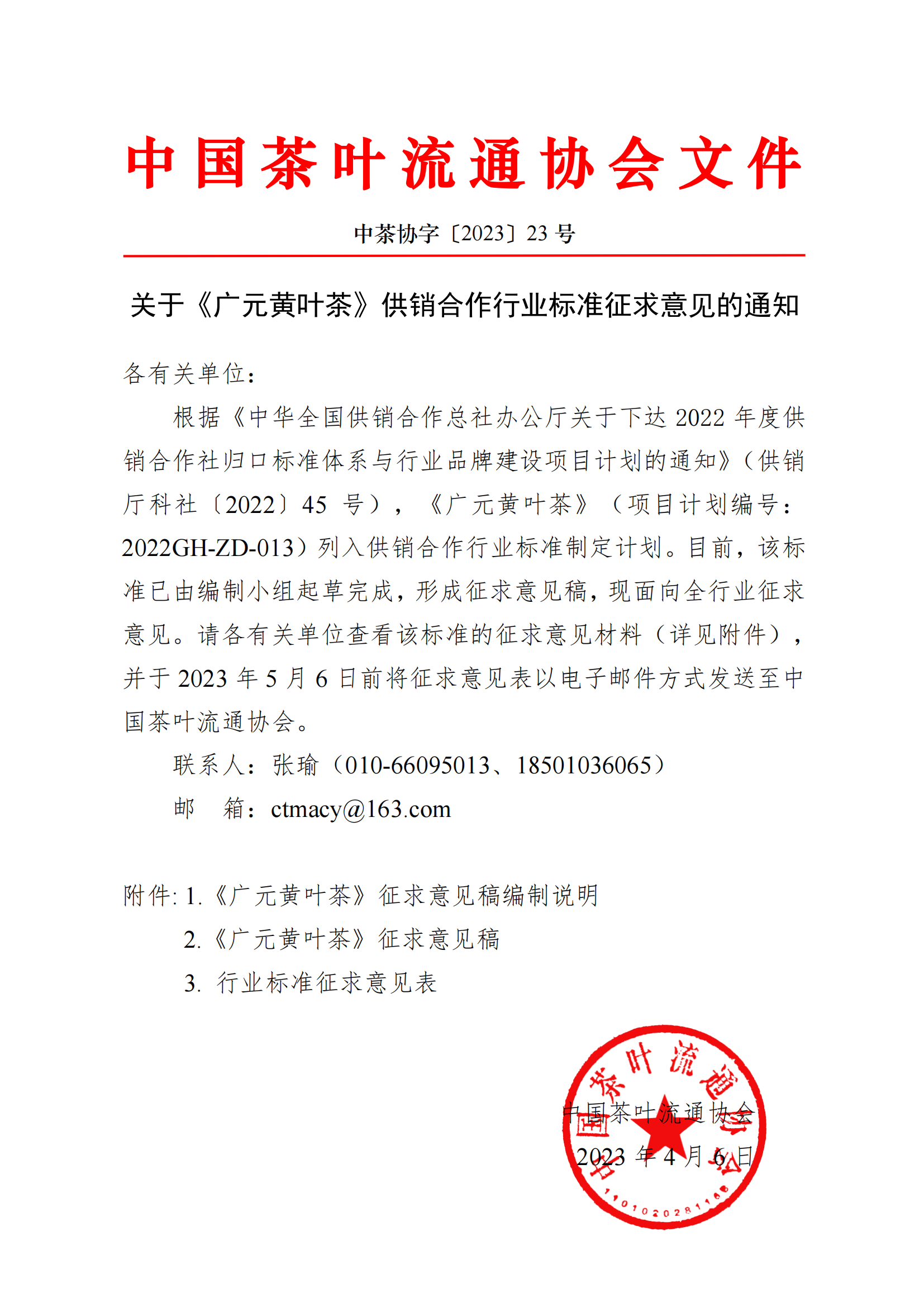 关于《广元黄叶茶》供销合作行业标准征求意见的通知