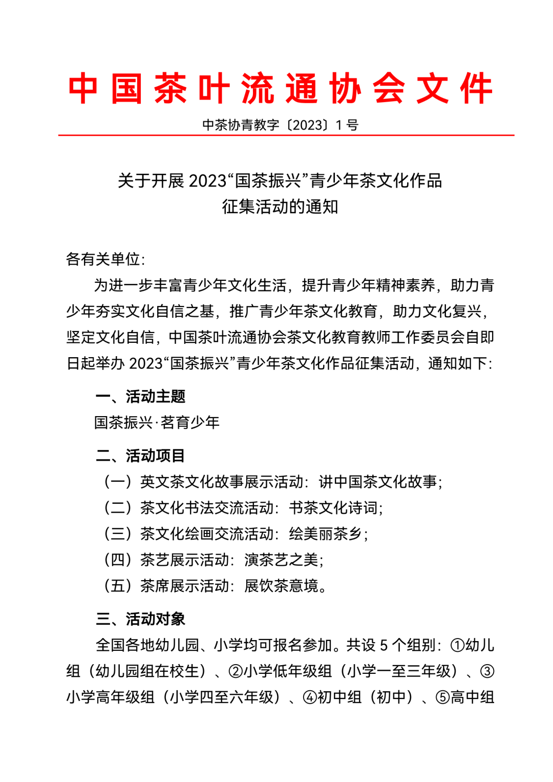 关于招募中国茶叶流通协会青年工作委员会第一届委员的通知