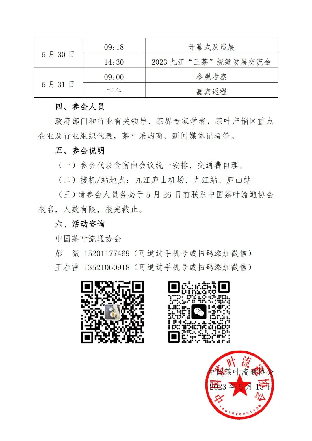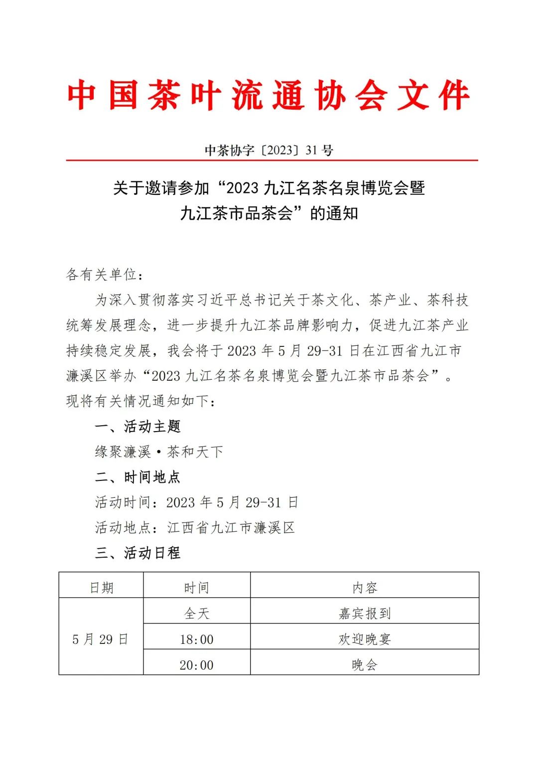关于邀请参加“2023九江名茶名泉博览会暨九江茶市品茶会”的通知