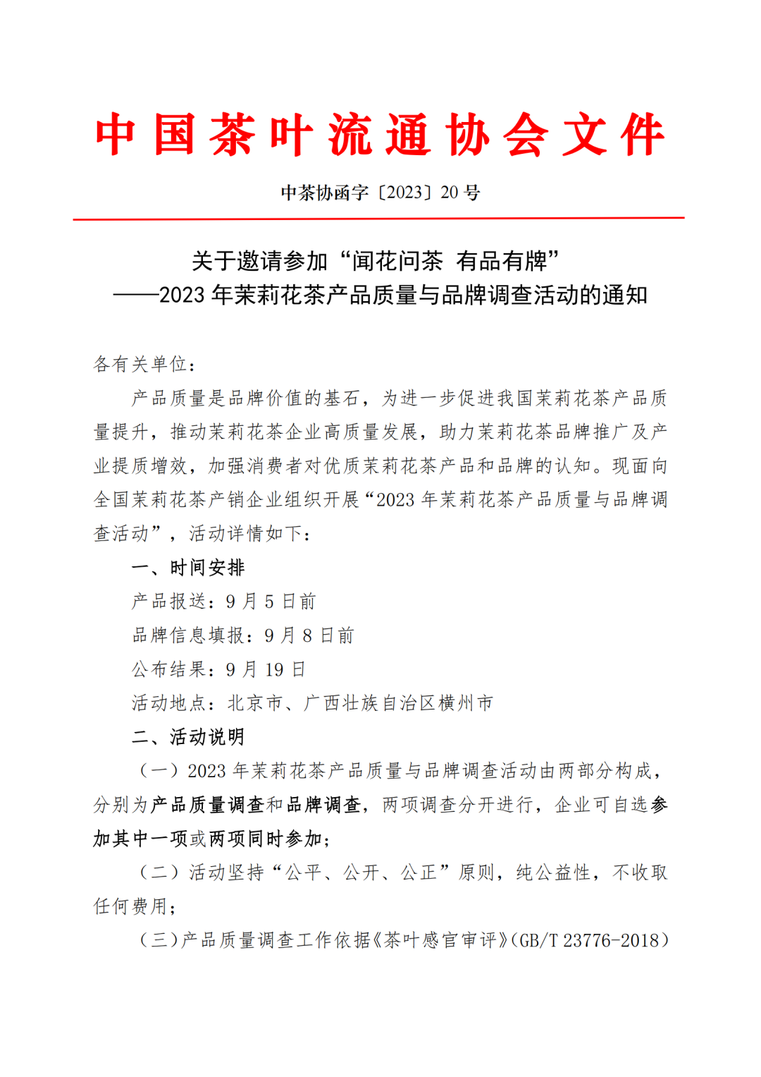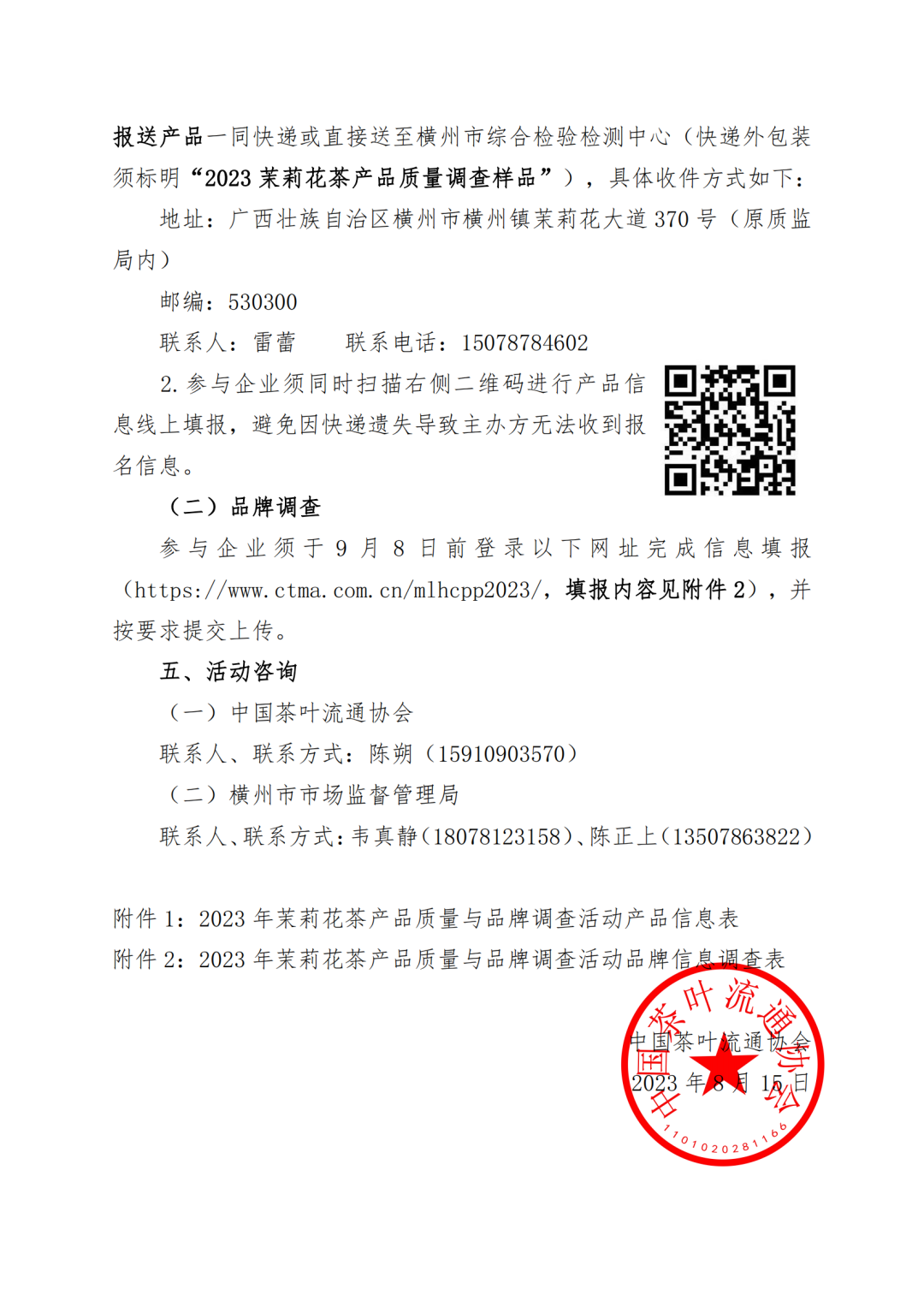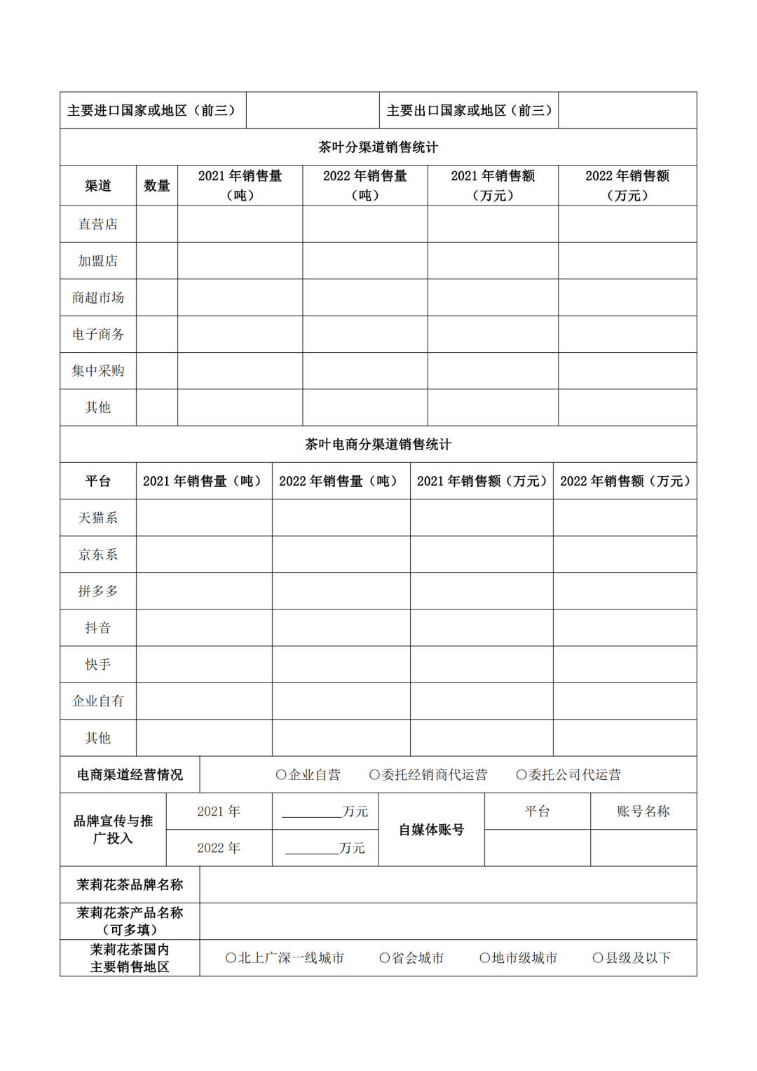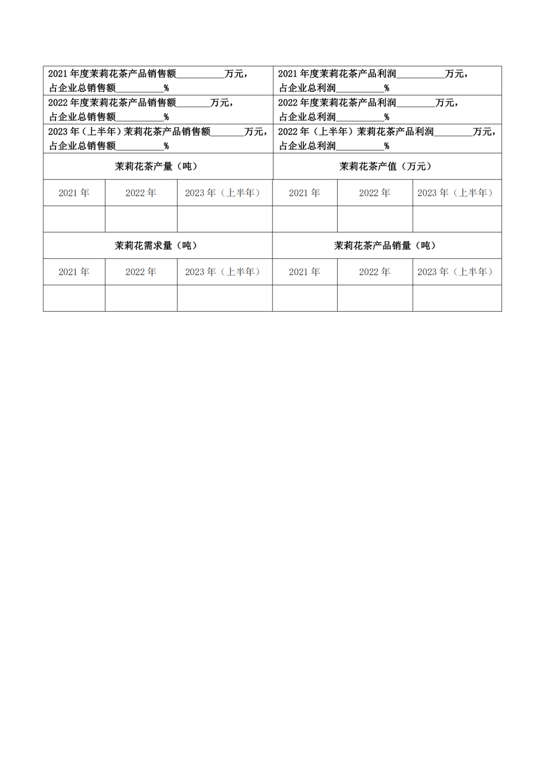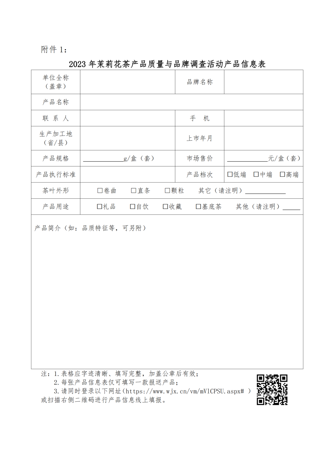 附件1:2023年茉莉花茶产品质量与品牌调查活动产品信息表