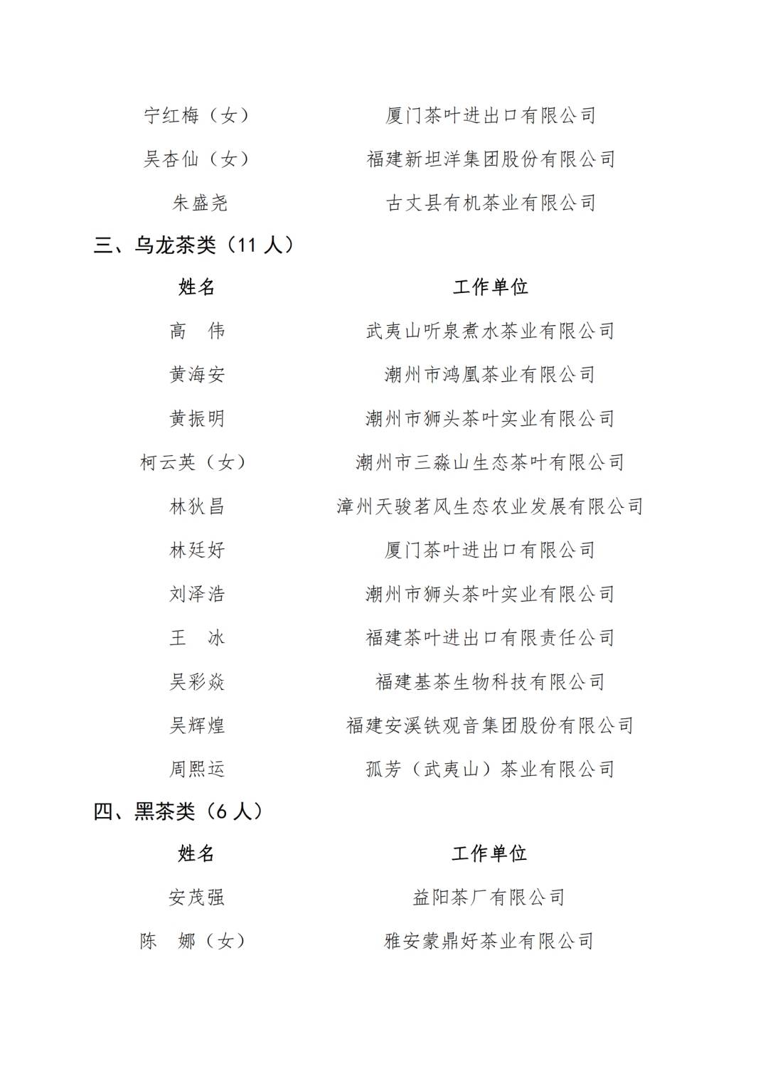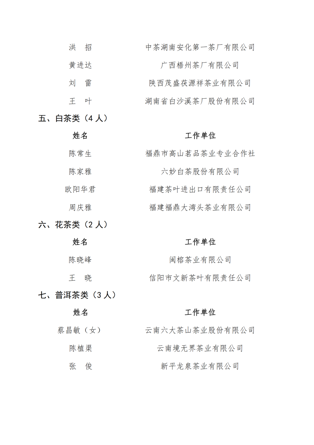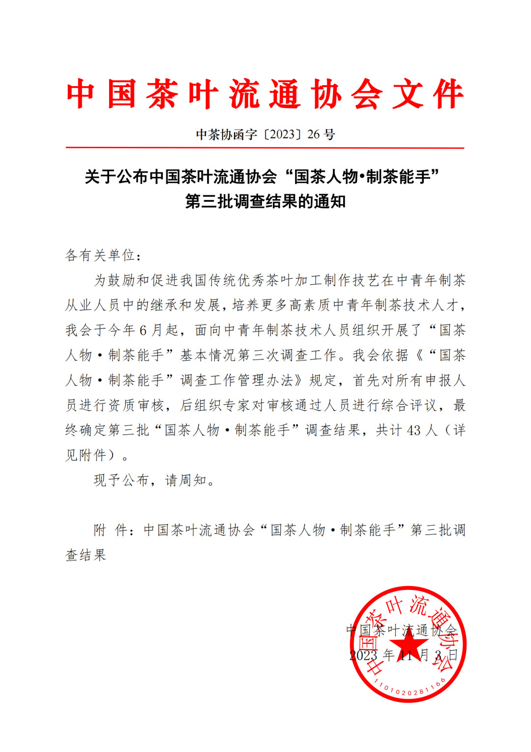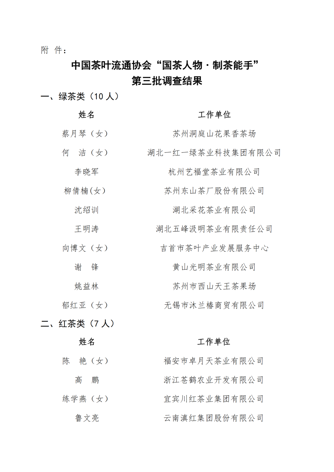 关于公布中国茶叶流通协会“国茶人物•制茶能手”第三批调查结果的通知