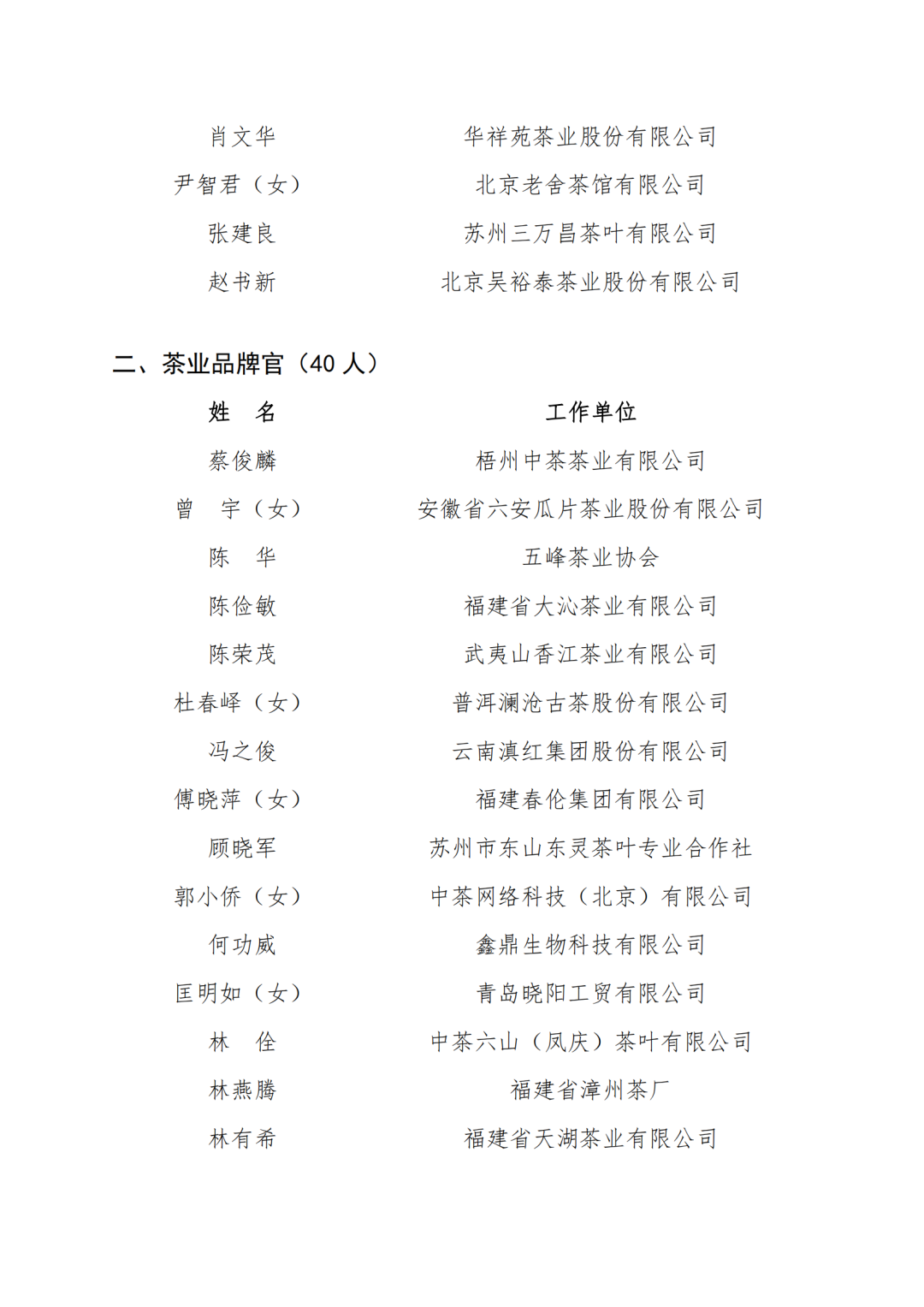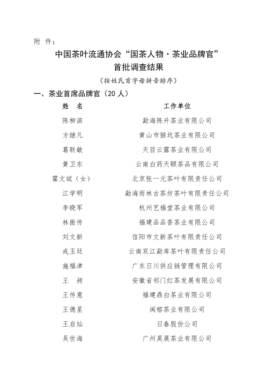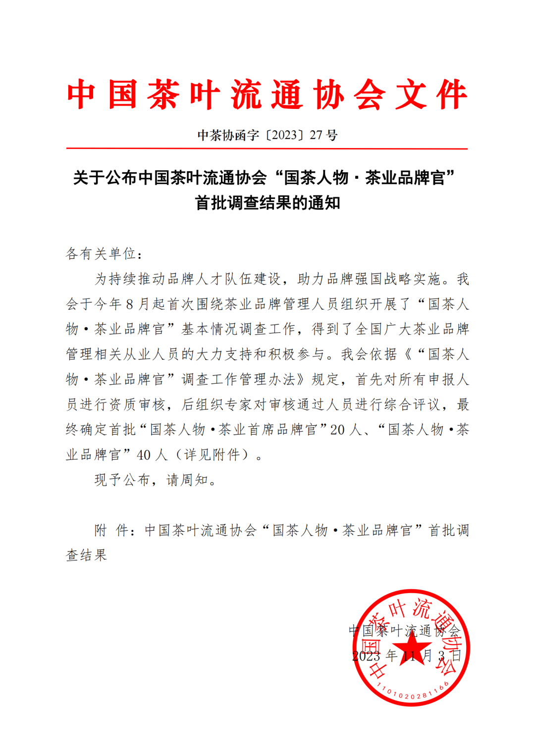 关于公布中国茶叶流通协会“国茶人物·茶业品牌官”首批调查结果的通知