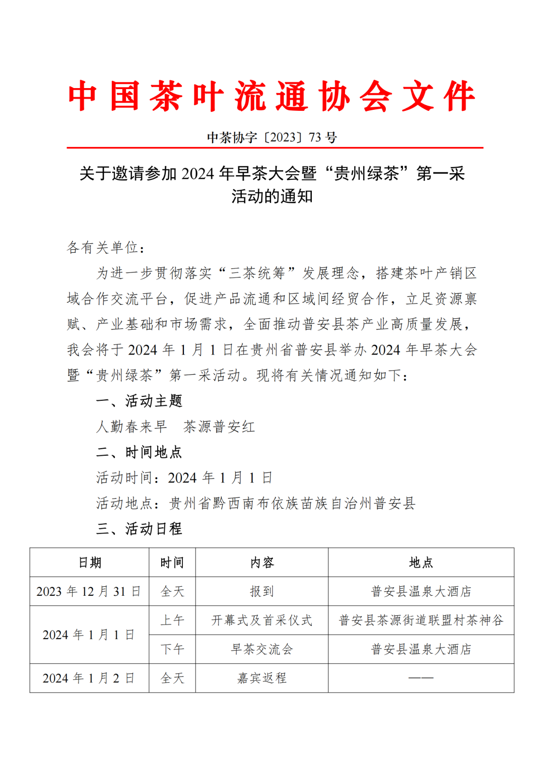 关于邀请参加2024年早茶大会暨“贵州绿茶”第一采活动的通知