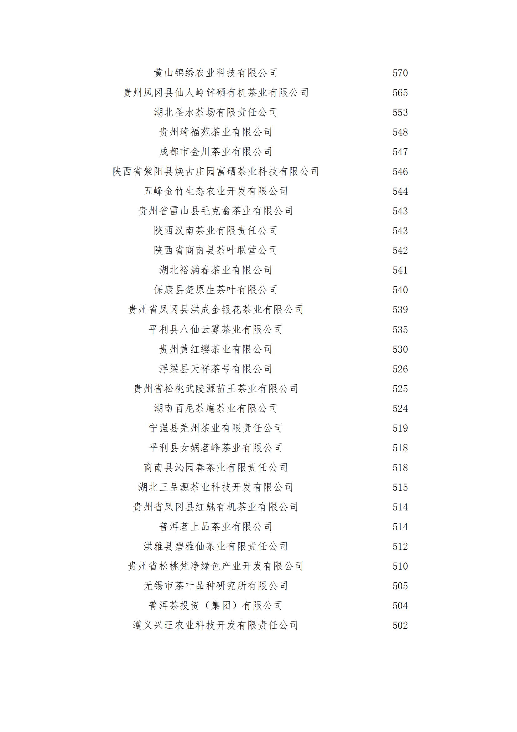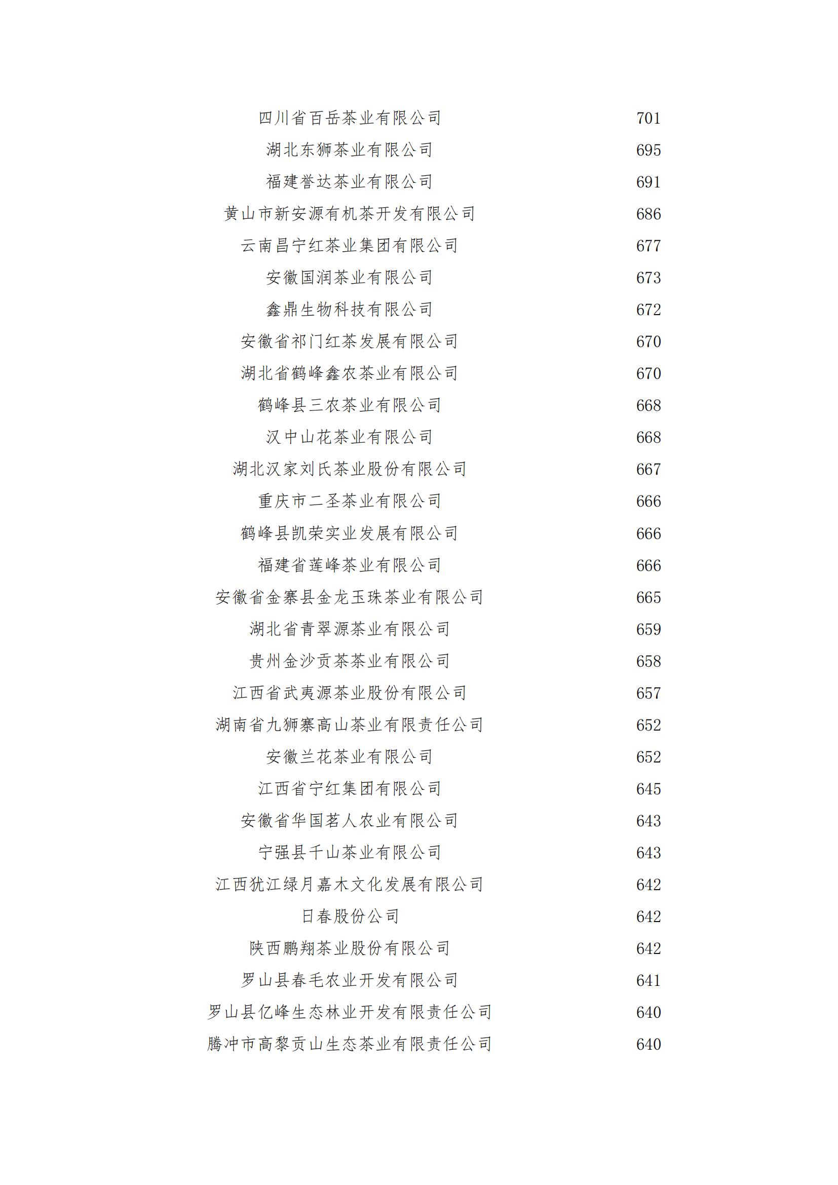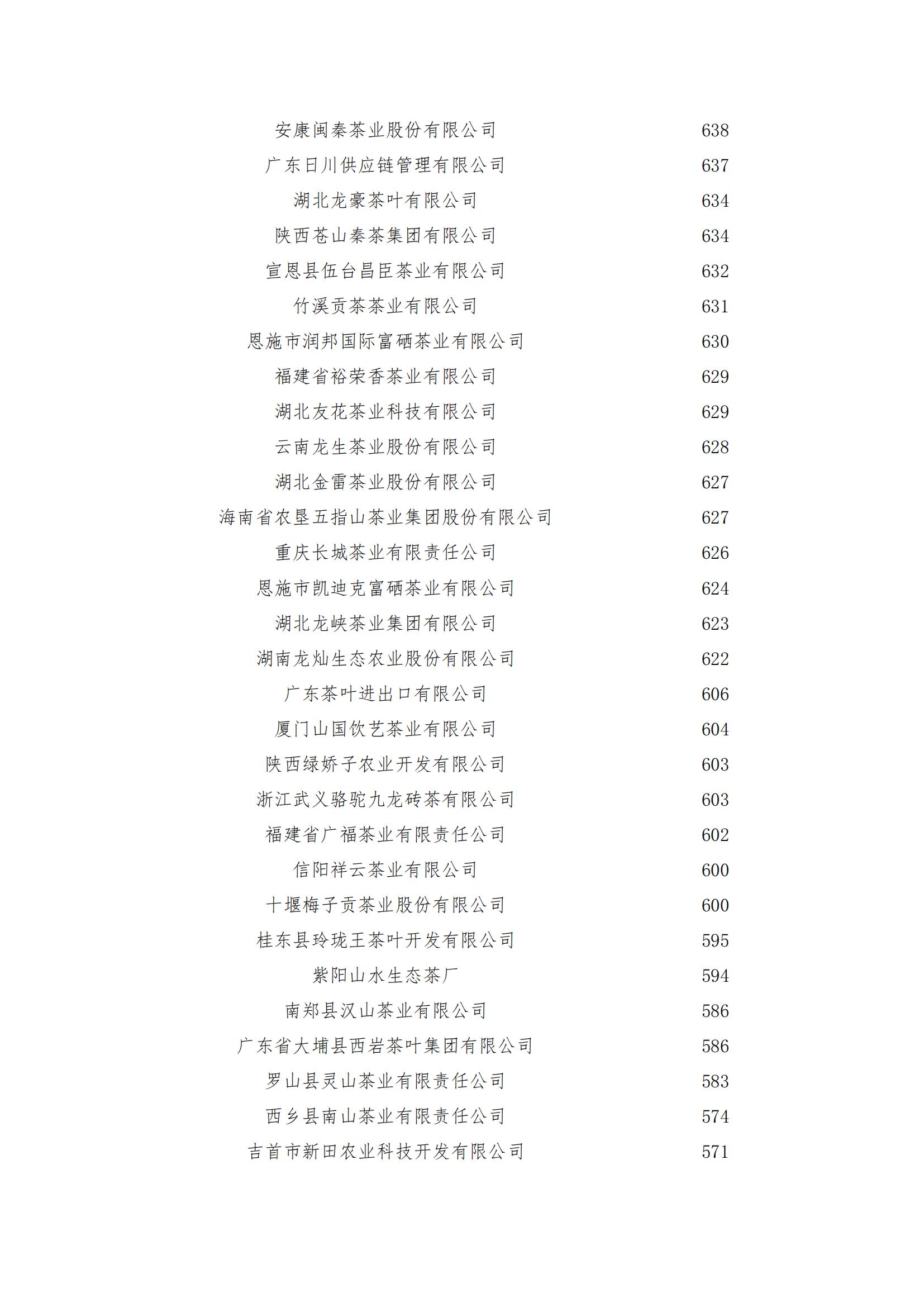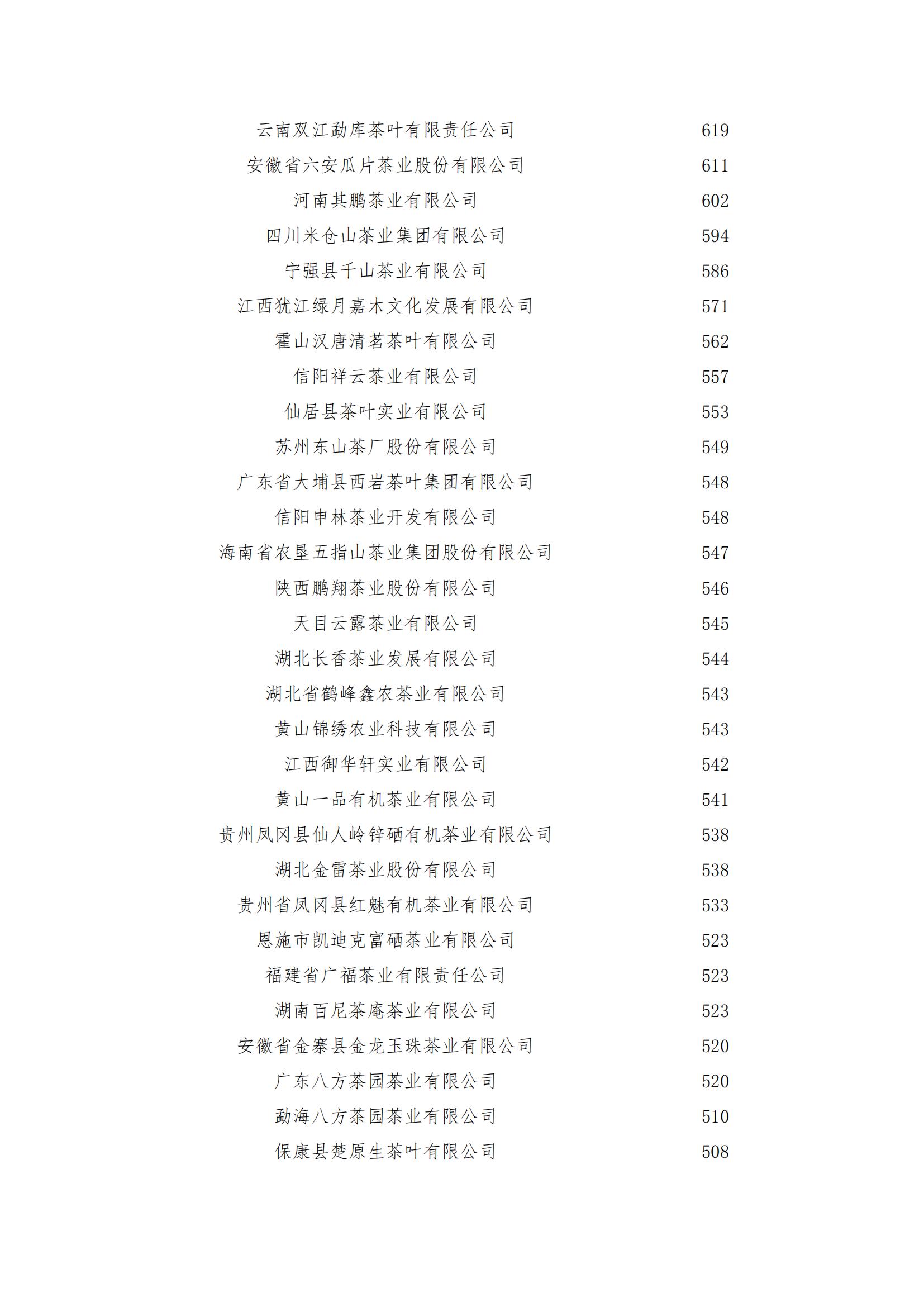 关于公布中国茶叶流通协会2023茶业品牌强度调查——茶叶企业品牌信息结果的通知