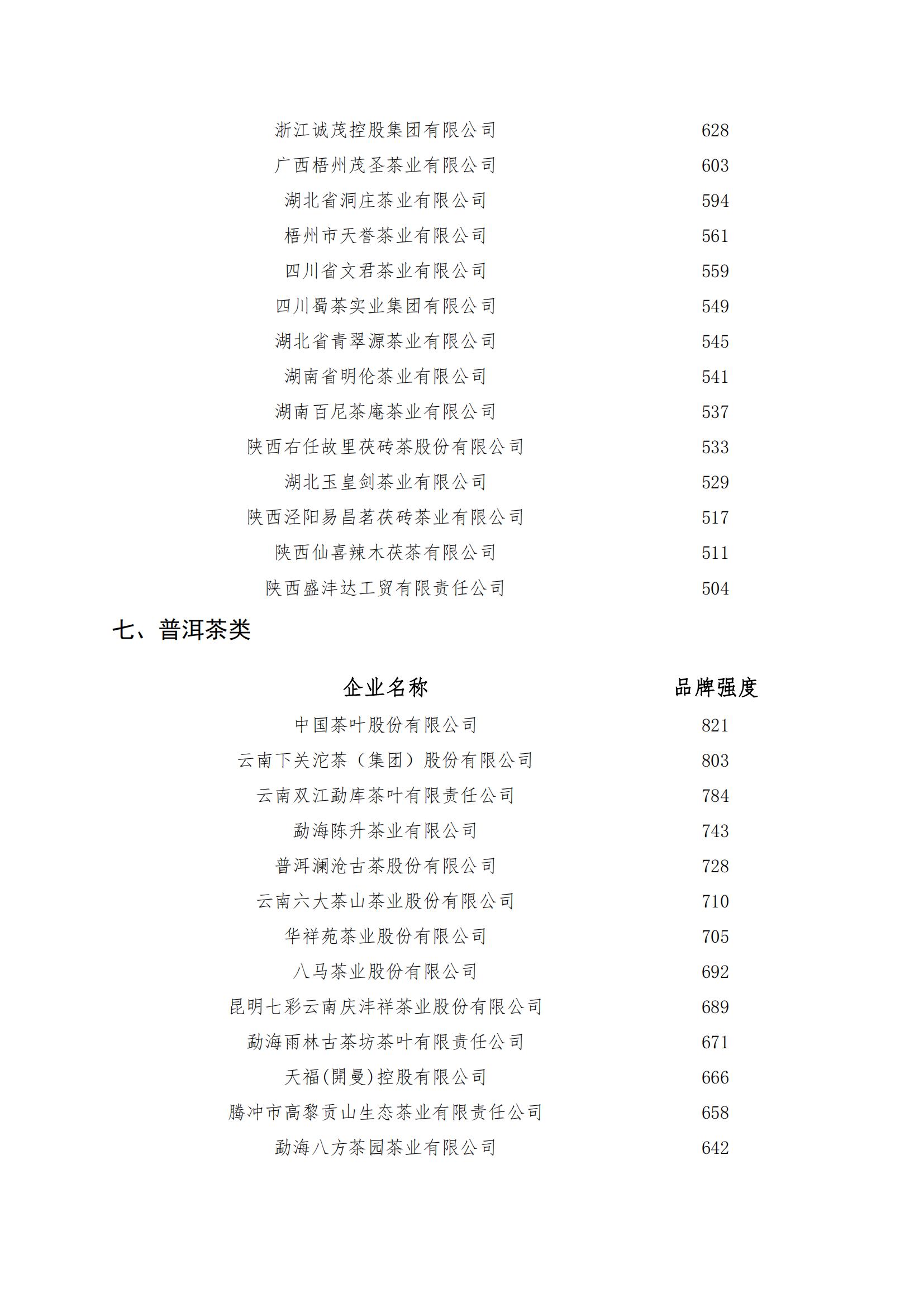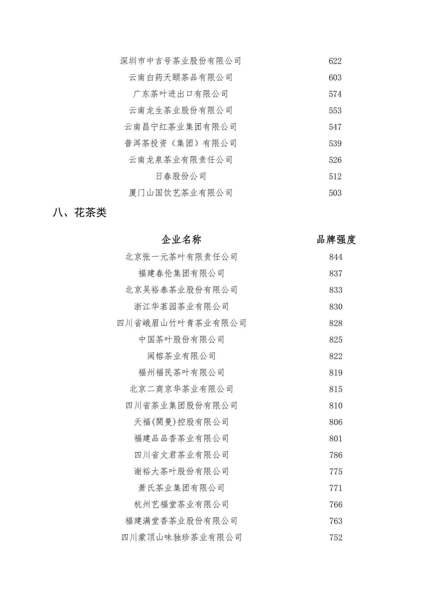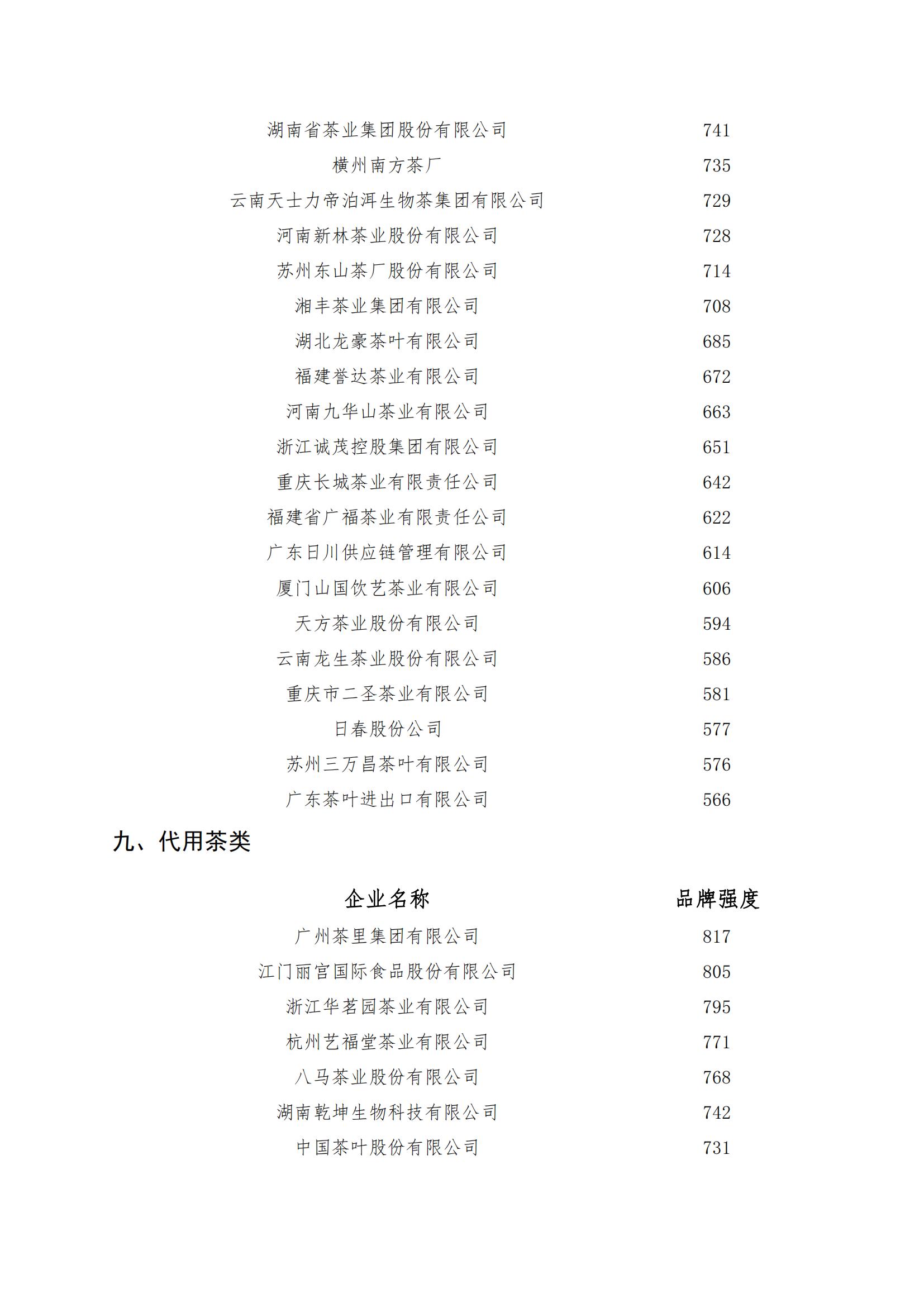 中国茶叶流通协会2023茶业品牌强度调查信息发布——茶叶产品品牌