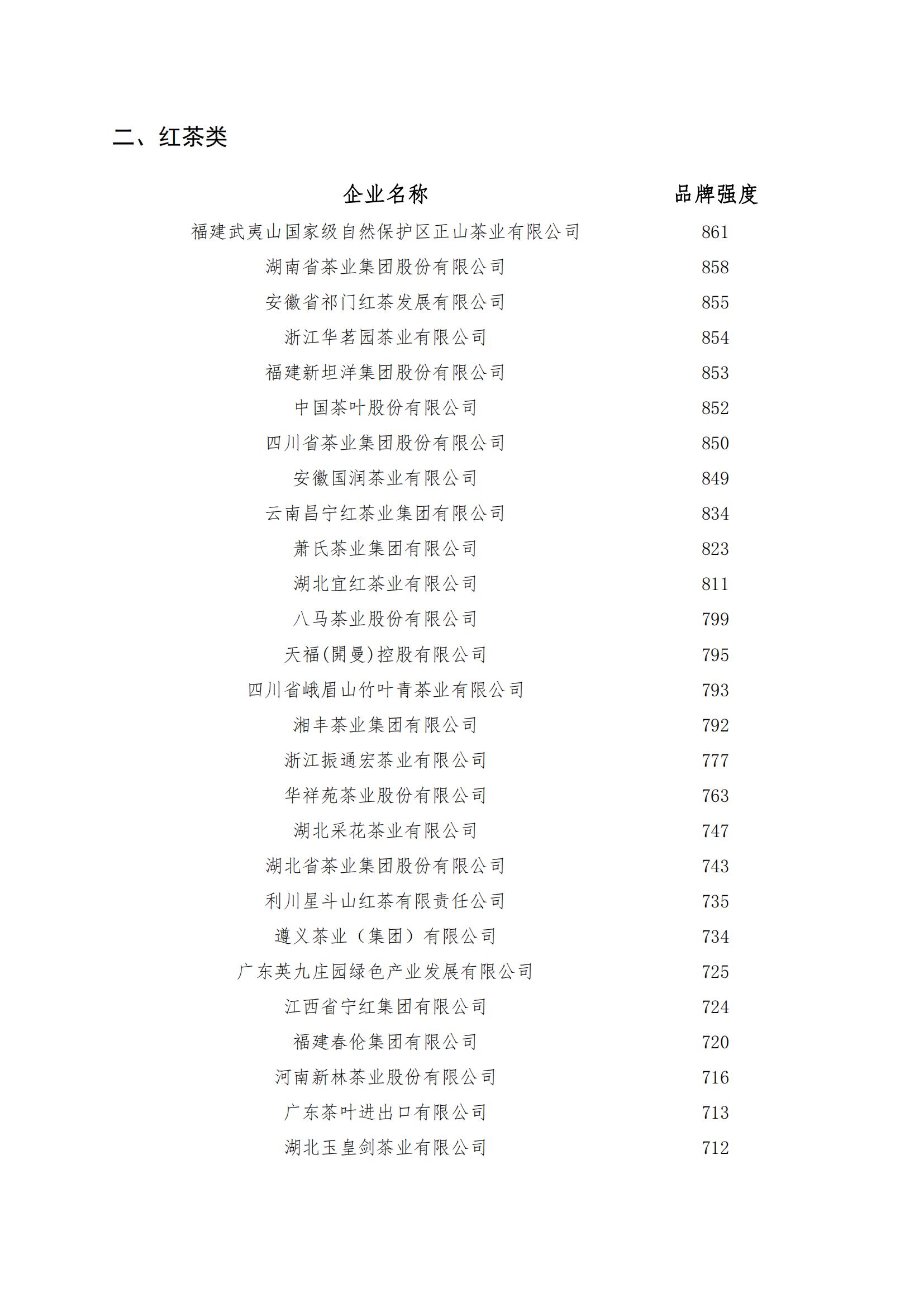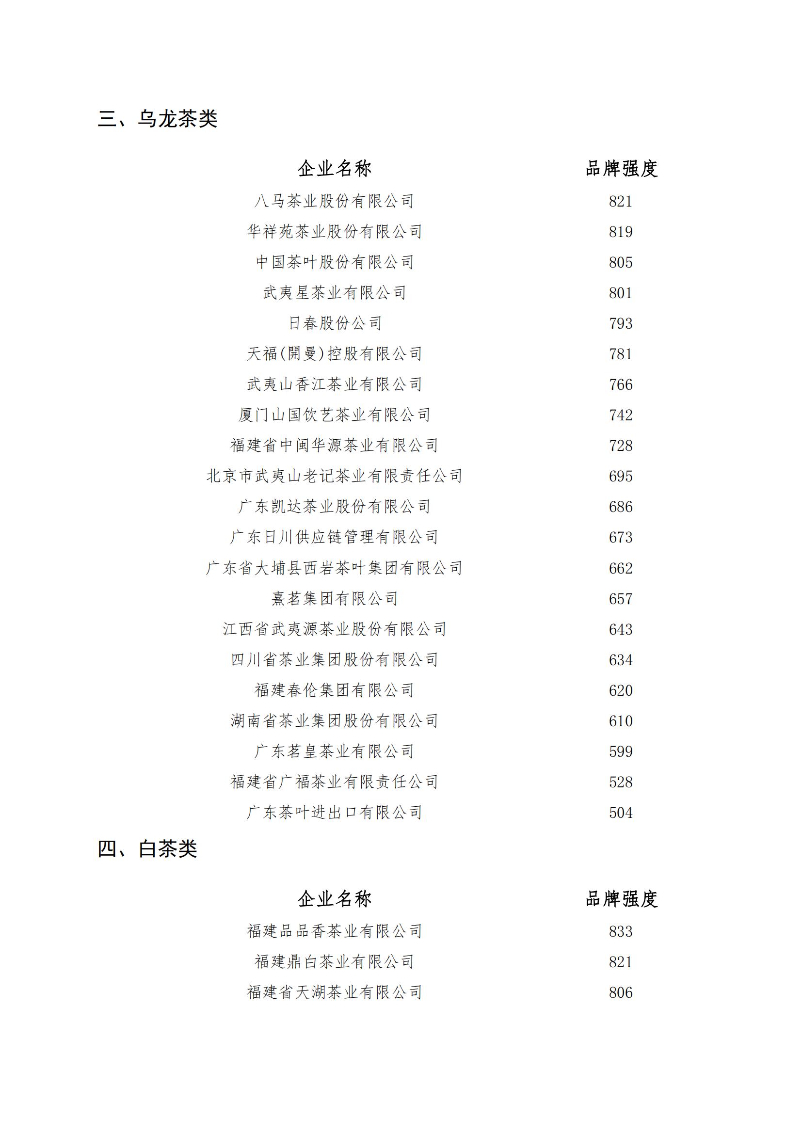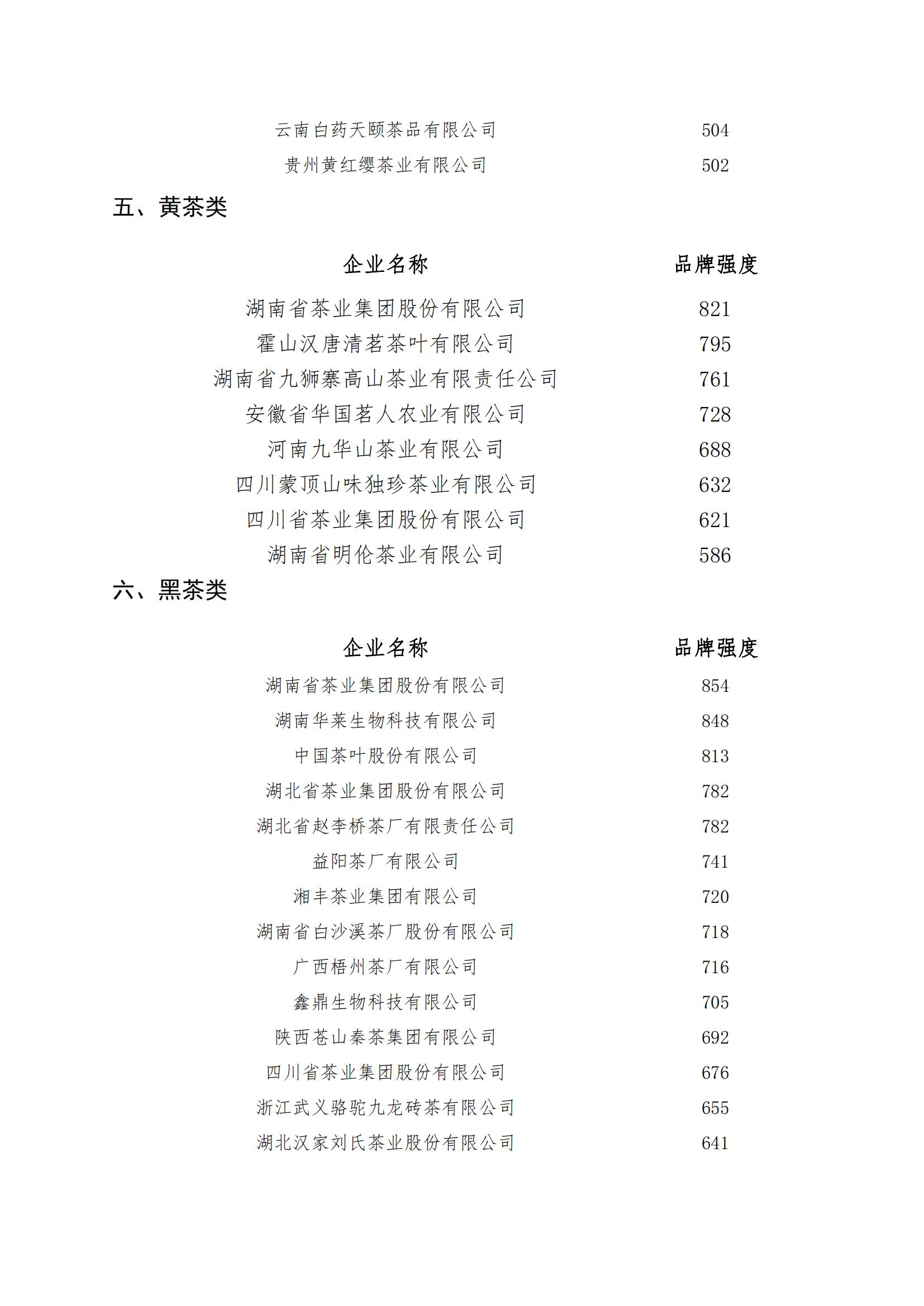 中国茶叶流通协会2023茶业品牌强度调查信息发布——茶叶产品品牌