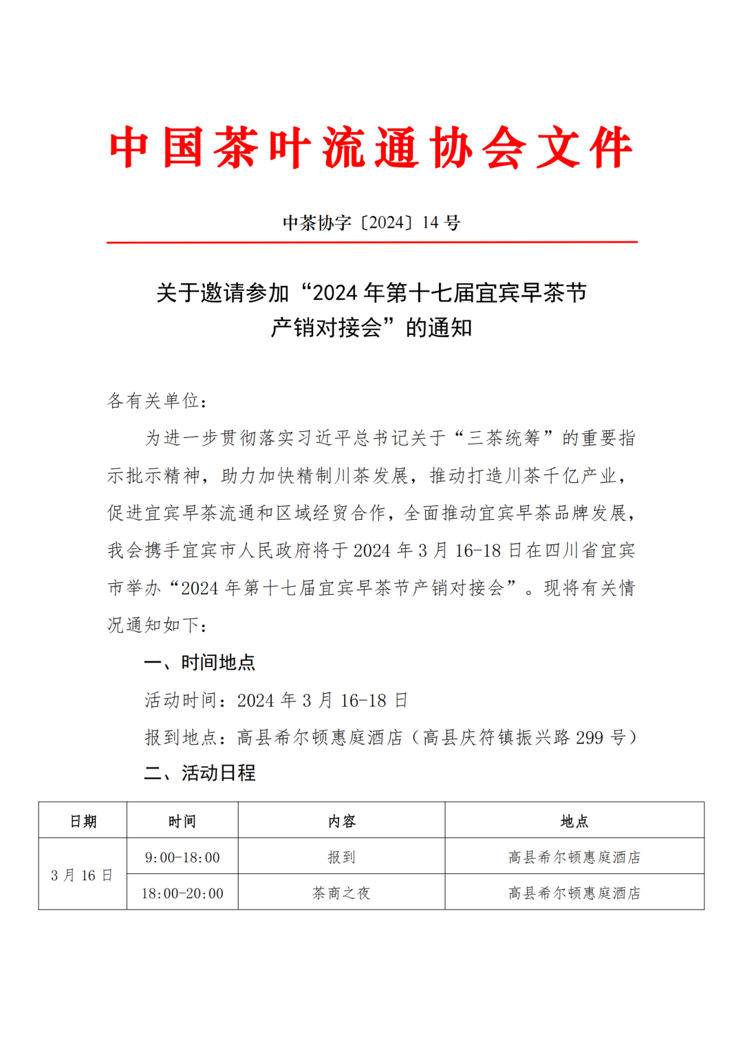 关于邀请参加“2024年第十七届宜宾早茶节产销对接会”的通知