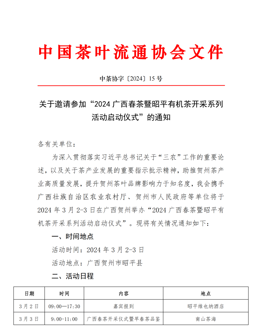 关于邀请参加“2024广西春茶暨昭平有机茶开采系列活动启动仪式”的通知