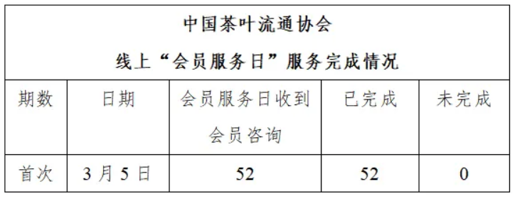 为了进一步加强协会与会员单位之间的沟通与交流,提升协会服务质量,提高精准服务效能,中国茶叶流通协会在3月5日开启了首个线上会员服务日,活动当天共收到52项会员咨询和服务需求信息,协会工作人员对每一条信息都给予了及时答复,得到了会员们的认可与好评。4月9日(周二)协会将继续开展第二个线上“会员服务日”,现将相关事项通知如下: