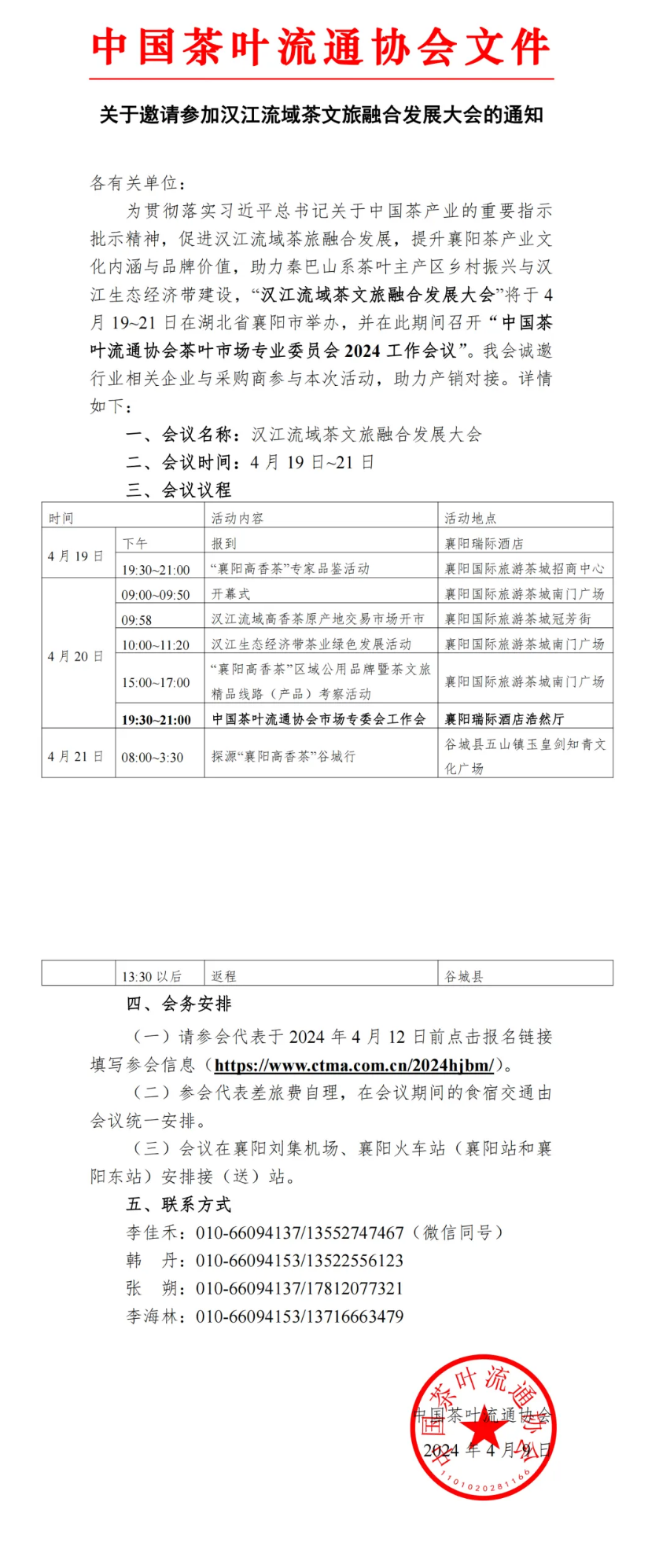 关于邀请参加汉江流域茶文旅融合发展大会的通知