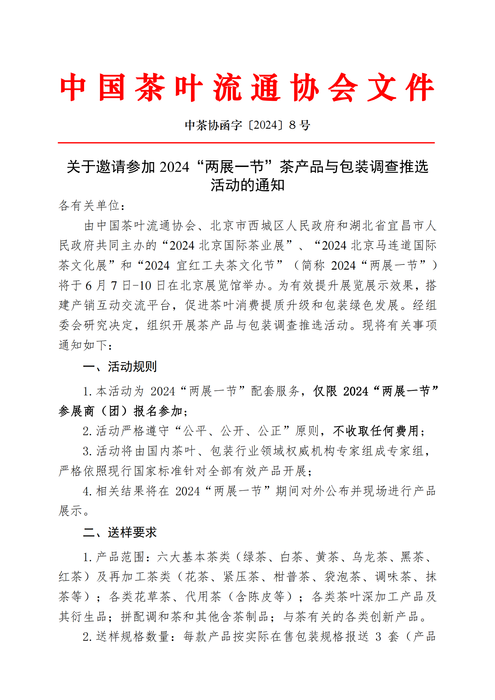 关于邀请参加2024“两展一节”茶产品与包装调查推选活动的通知