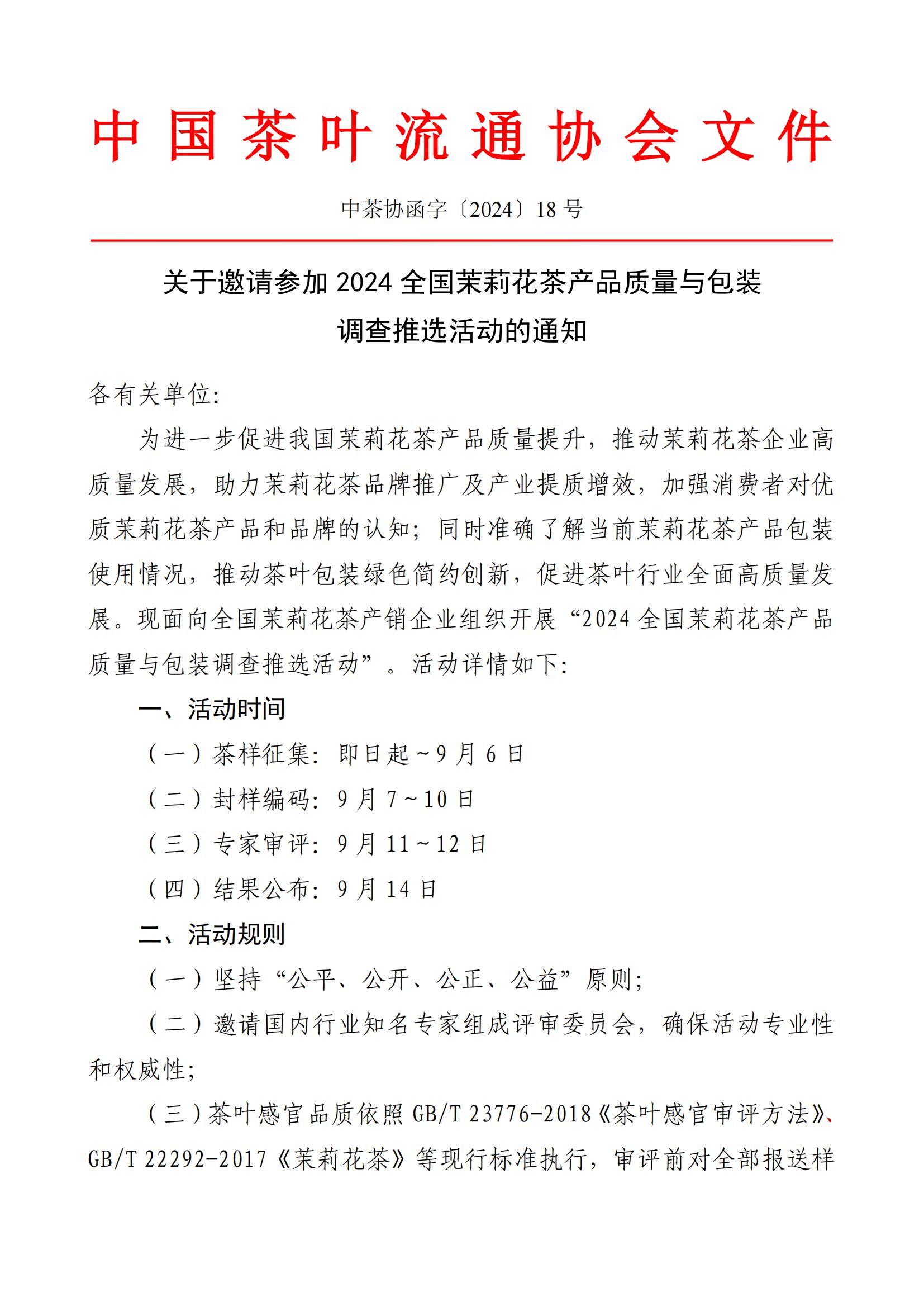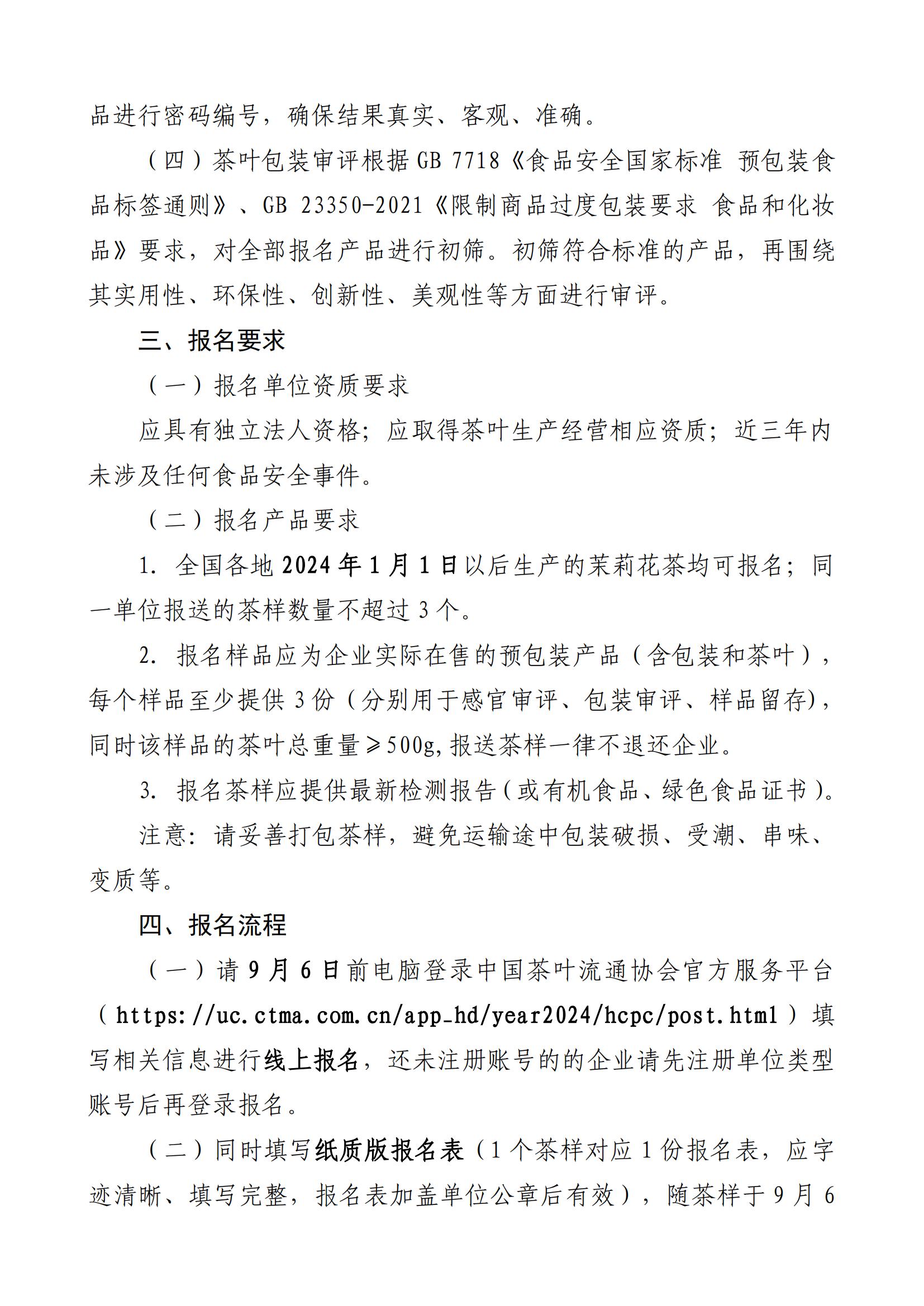 1. 全国各地2024年1月1日以后生产的茉莉花茶均可报名;同一单位报送的茶样数量不超过3个。