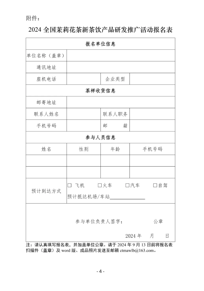 附件:2024全国茉莉花茶新茶饮产品研发推广活动报名表