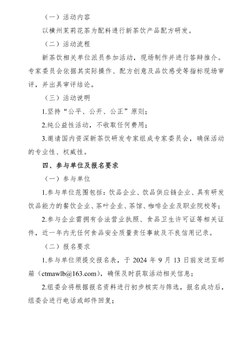1.参与单位范围包括:饮品企业、饮品供应链企业、具有研发饮品能力的餐饮企业、茶叶企业、茶馆、咖啡企业及职业院校等;