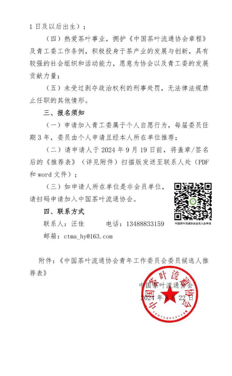 关于招募中国茶叶流通协会青年工作委员会第一届委员的通知